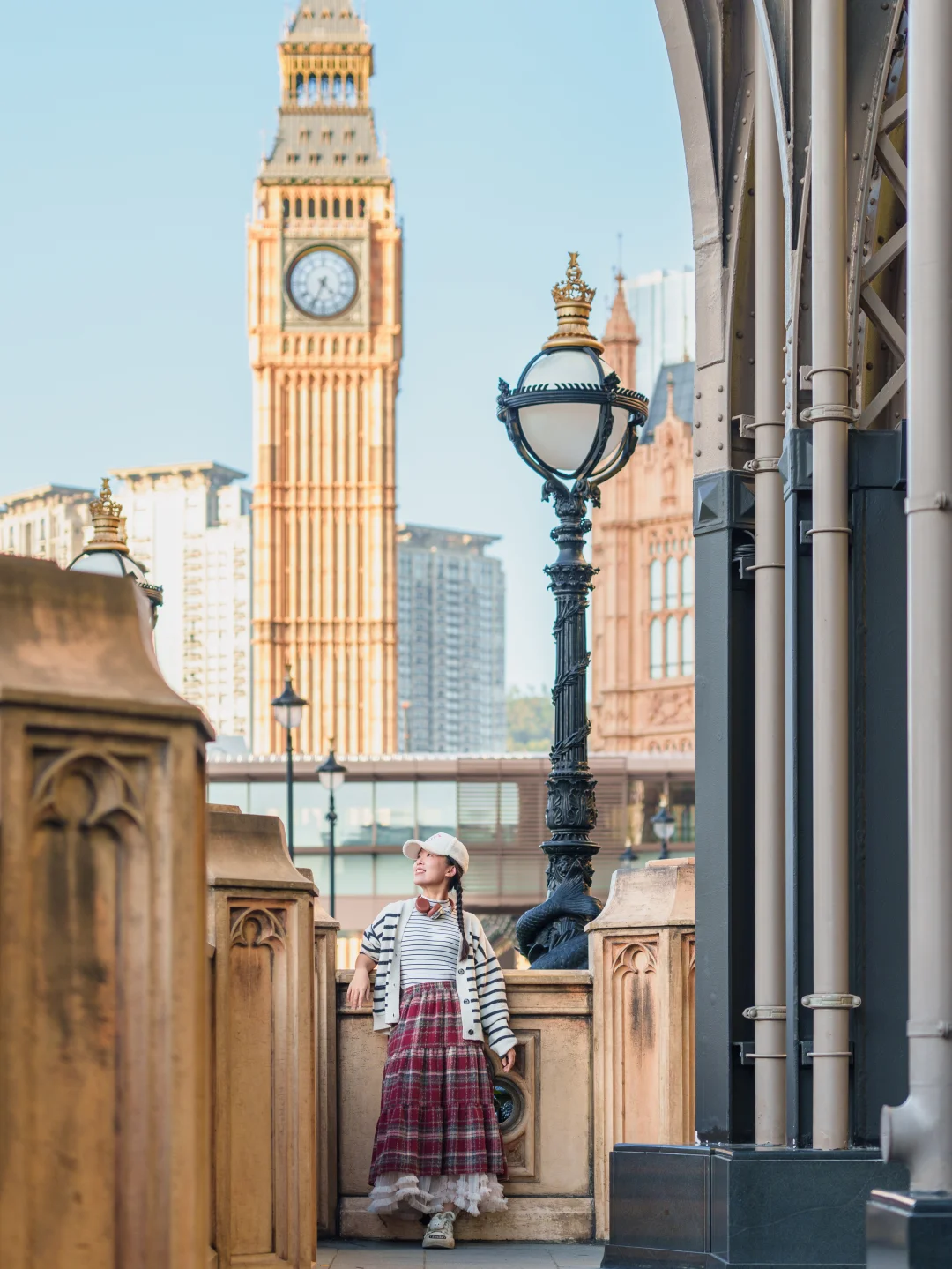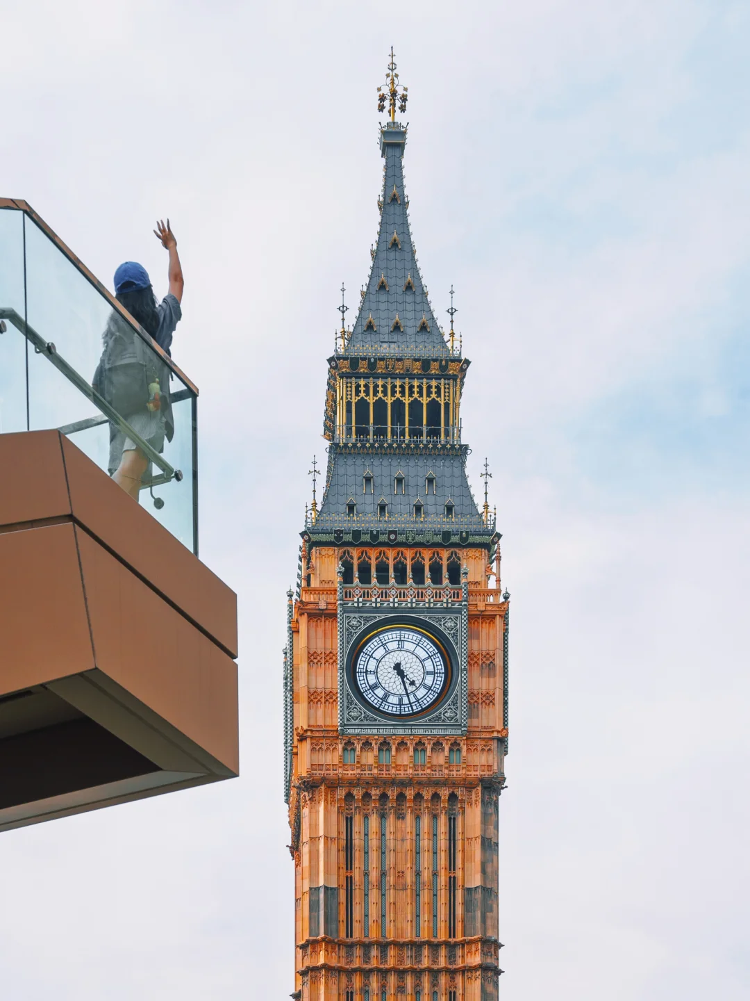 图❶⑥ 伦敦人星光之桥3楼楼梯转角,人物与大本钟同框,摄影师在天桥底下向上仰拍[自拍R]