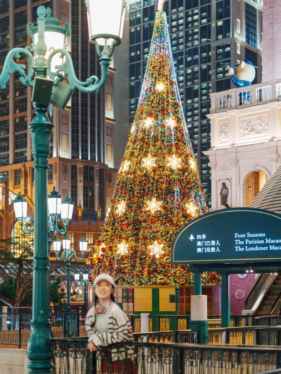 图❶① 威尼斯人门口的圣诞树在晚上亮灯之后很有氛围感~[萌萌哒R]