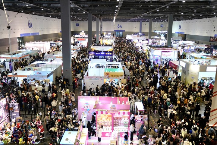 值得一提的是,本次展会覆盖杭州大会展中心6大展馆,不仅包含数千个同人创造者的同人摊位,吸引到逆水寒、巨物张田中、千禾星摇、春日花语等泛二次元IP品牌的参与,淘宝、卫龙、美图、佳能等三次元大众品牌也在现场和二次元爱好者们“打成一片”。