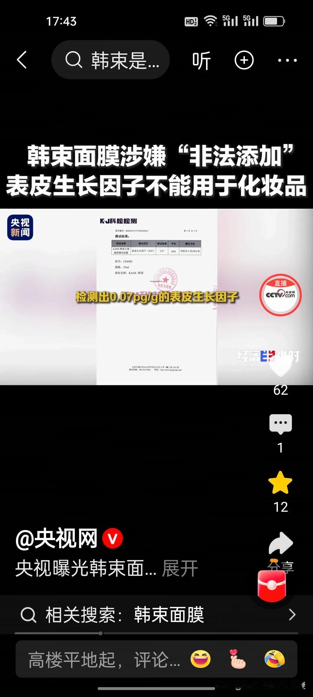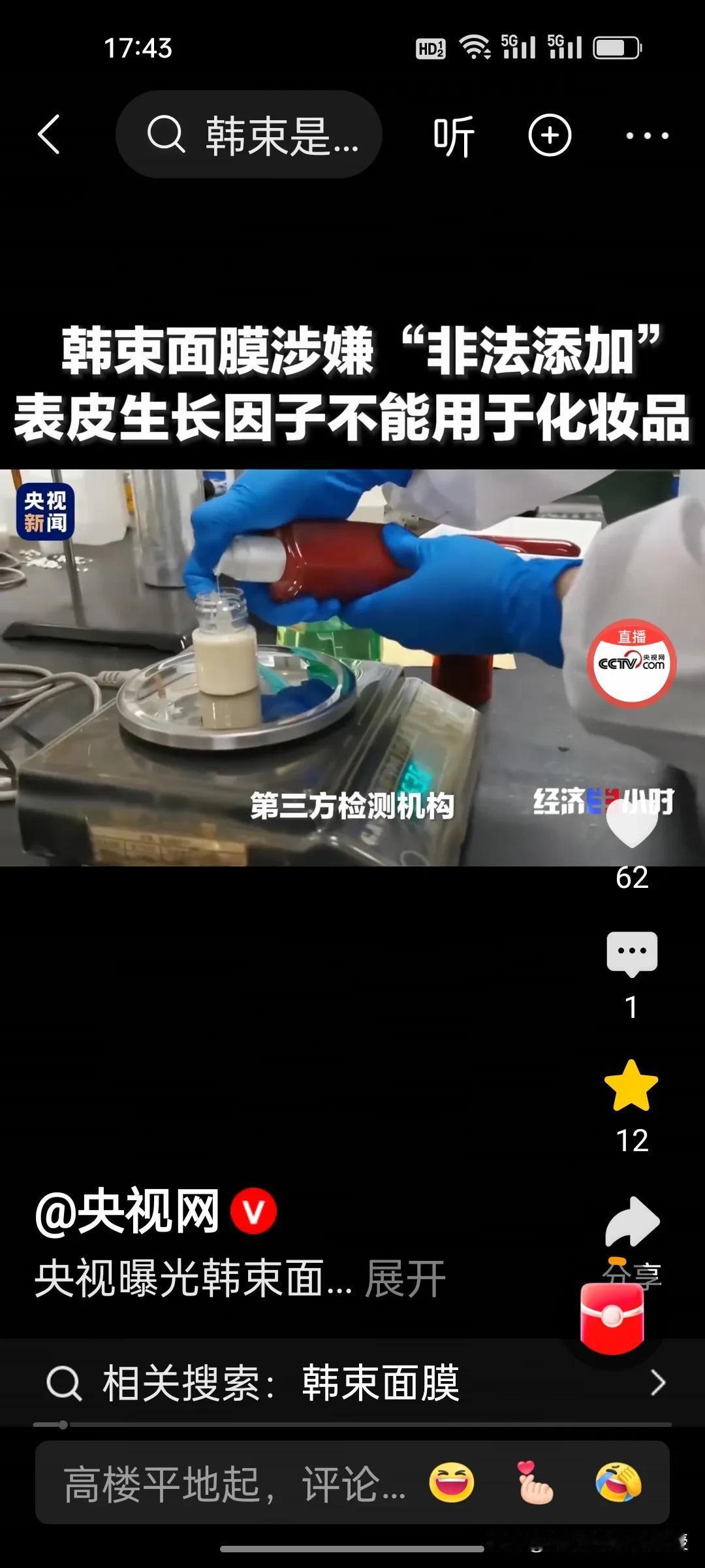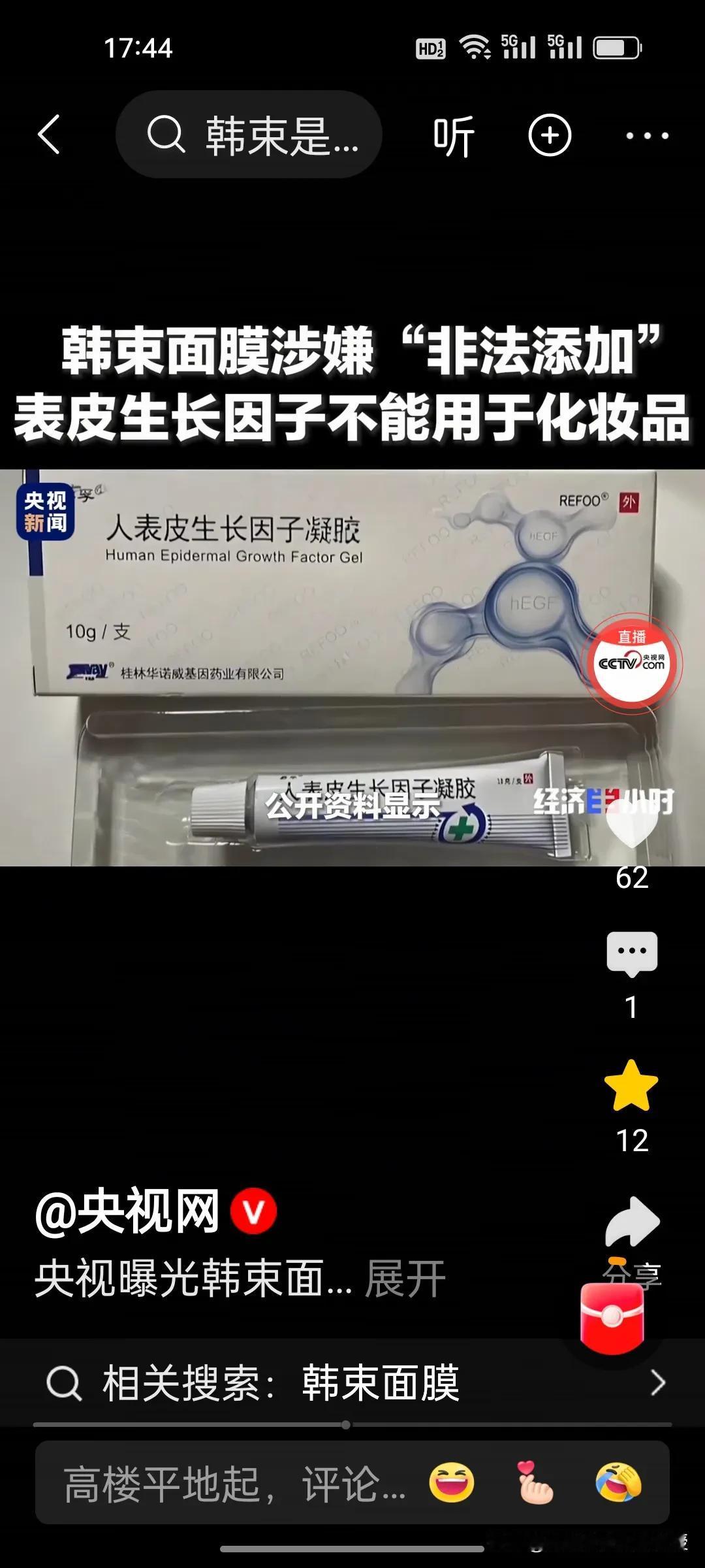 刚刚,韩束遇到大麻烦了!被央视曝光其几款面膜含有表皮生长因子,其在2019年就被
