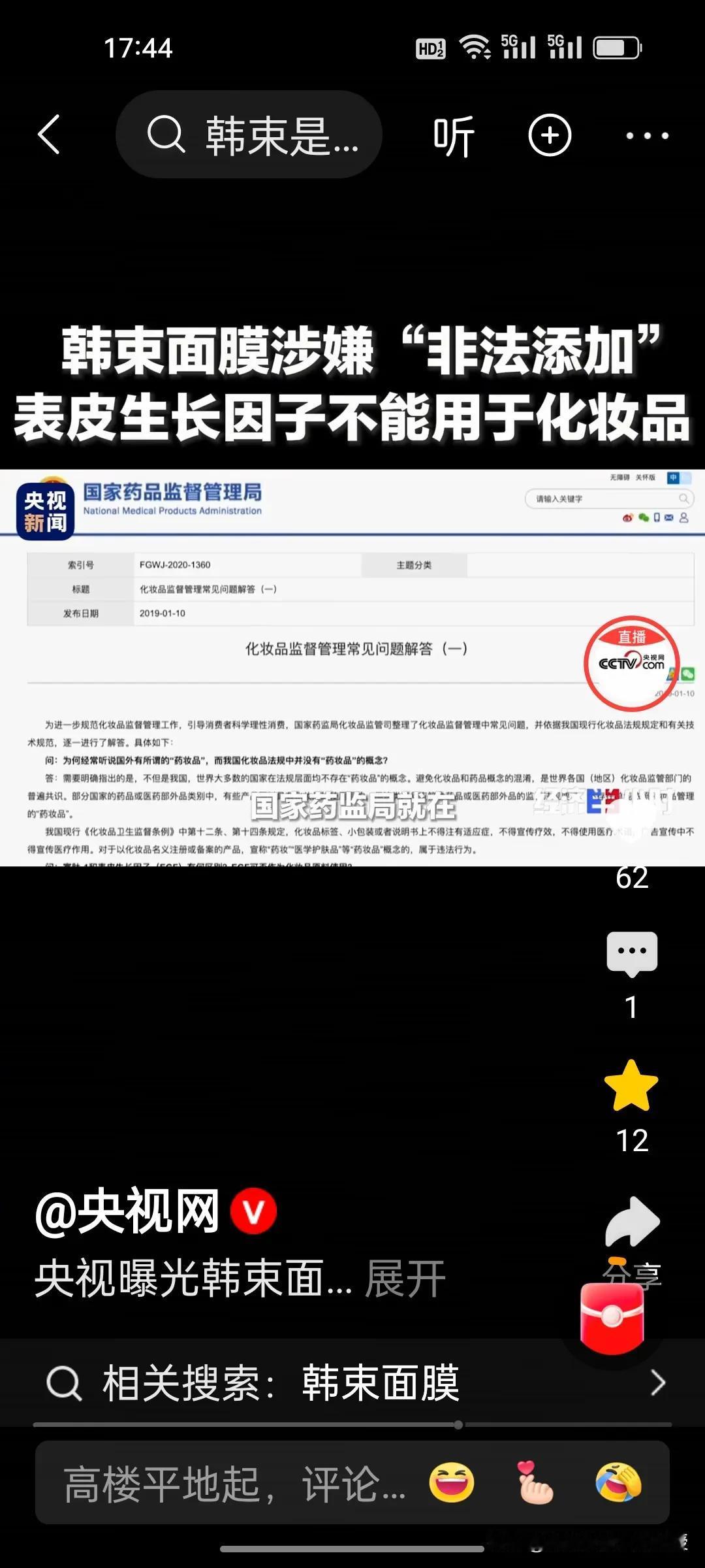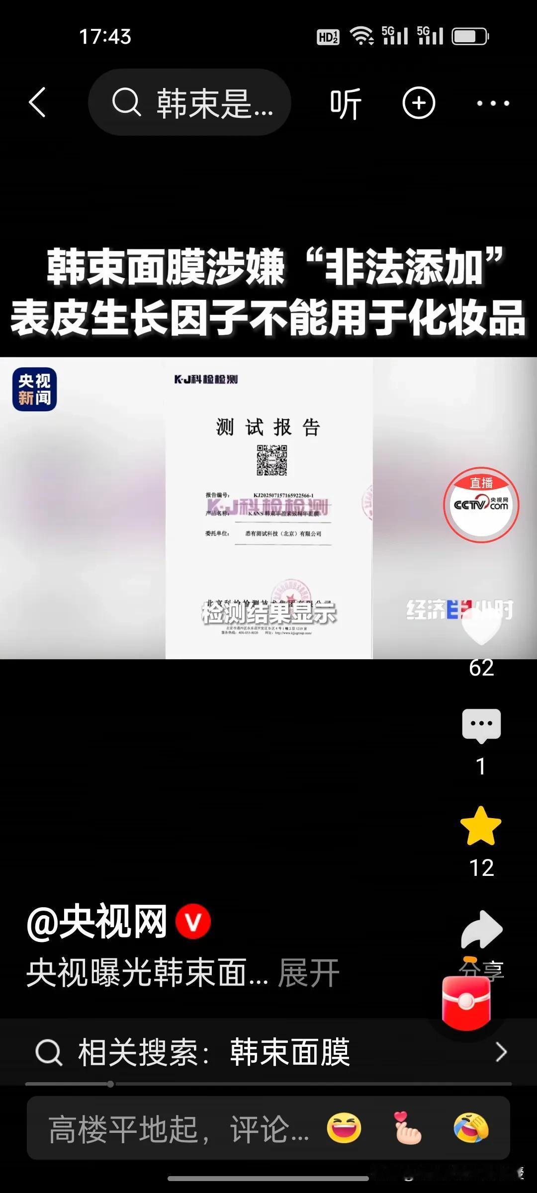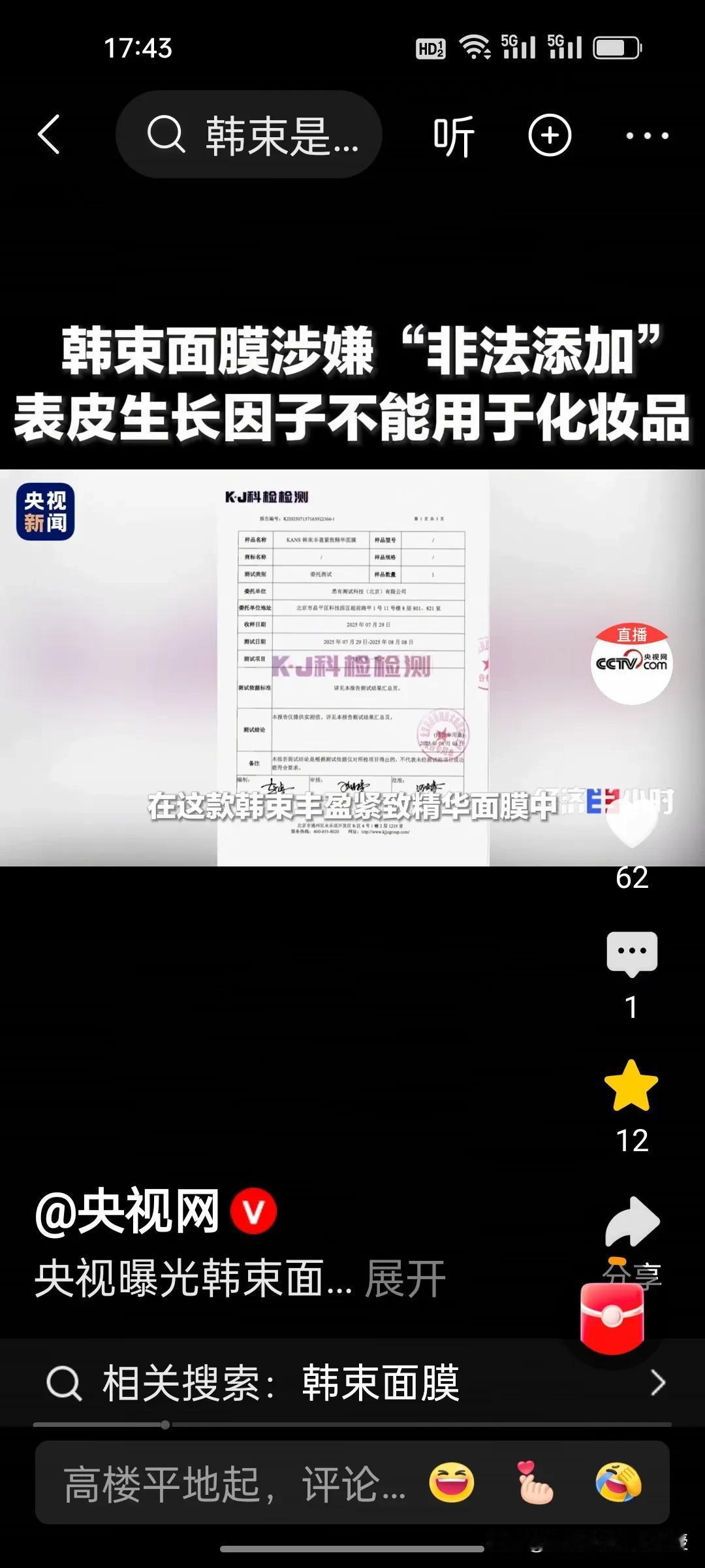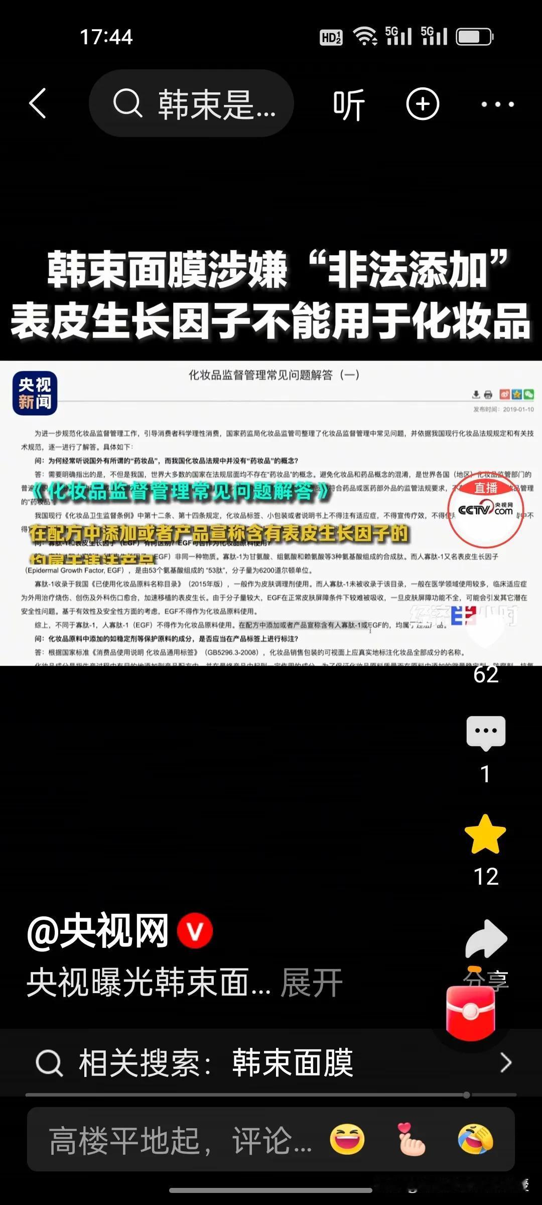 刚刚,韩束遇到大麻烦了!被央视曝光其几款面膜含有表皮生长因子,其在2019年就被