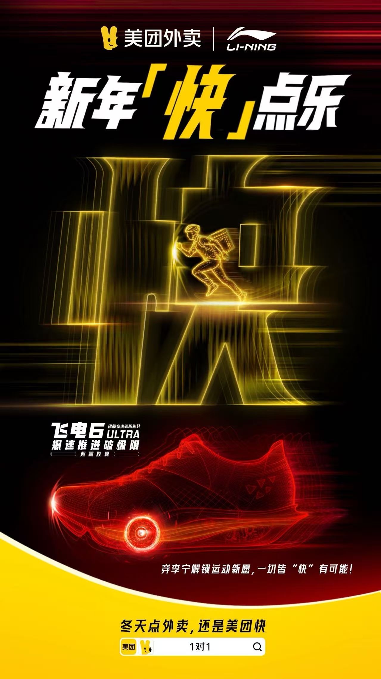 美团外卖祝你新年快点乐冬天点外卖还是美团快这人脉局太有排面!周杰伦代言镇场够分量,还集结爱玛、李宁、Keep等11个快品牌组团送福利,跨年阵容豪华到犯规~ 足见品牌号召力多能打!关注官微参与活动,抽新年盲盒大礼包,500元代金卡等你拿,这波必须冲!