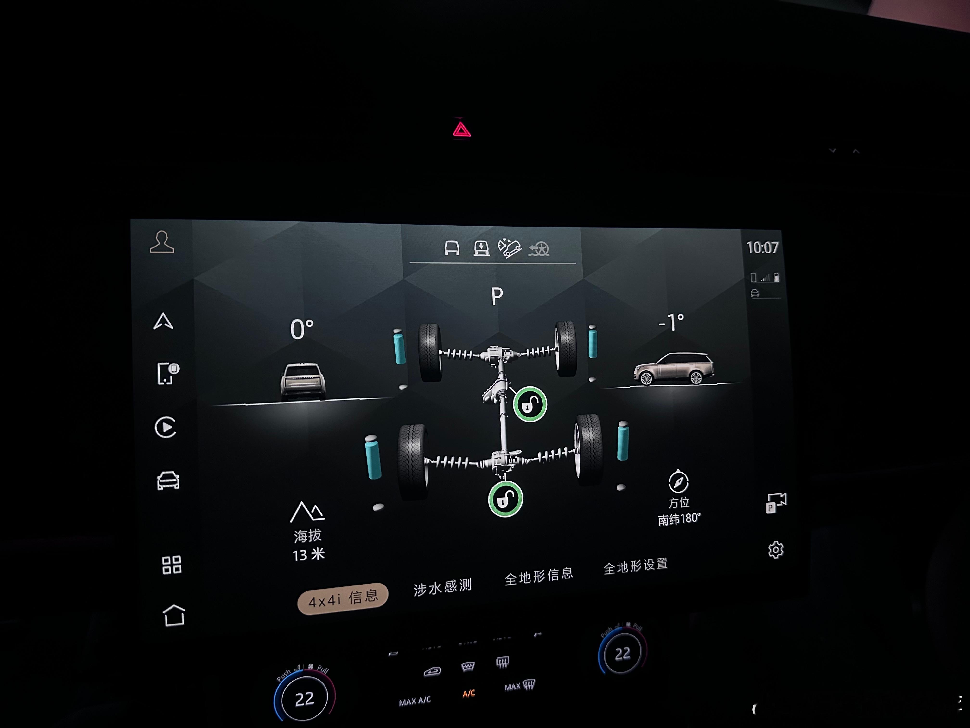 上一条大肆批判了揽胜的车机,但其实它也不是一无是处。作为一个老牌豪华品牌其在细节上还是有不少巧思提供。例如在全地形反馈调节车身姿态时,系统会很明确地告诉你当下的车高、尺寸和离地间隙。如果是在标准或高位还会标注清楚接近角离去角等。而现在“座舱发达”的中国越野车们能把这些信息都呈现清楚的其实也并不常见。另外就是一些有趣的功能,如车内有个DYNAMIC-I应用,图标是一个头盔,点进去发现是一个圈速计时器。这太抽象了,会有人开揽胜去下赛道吗?或者另一种解读就是,揽胜是一个更加全能的定位,既可以off road也具备不错的公路性能。因为普通版卫士(非OCTA)就没有这个app。另外就是4*4界面,也算是车载越野APP的鼻祖了。这方面部分中国品牌已经完成了对标超越,就不展开了。