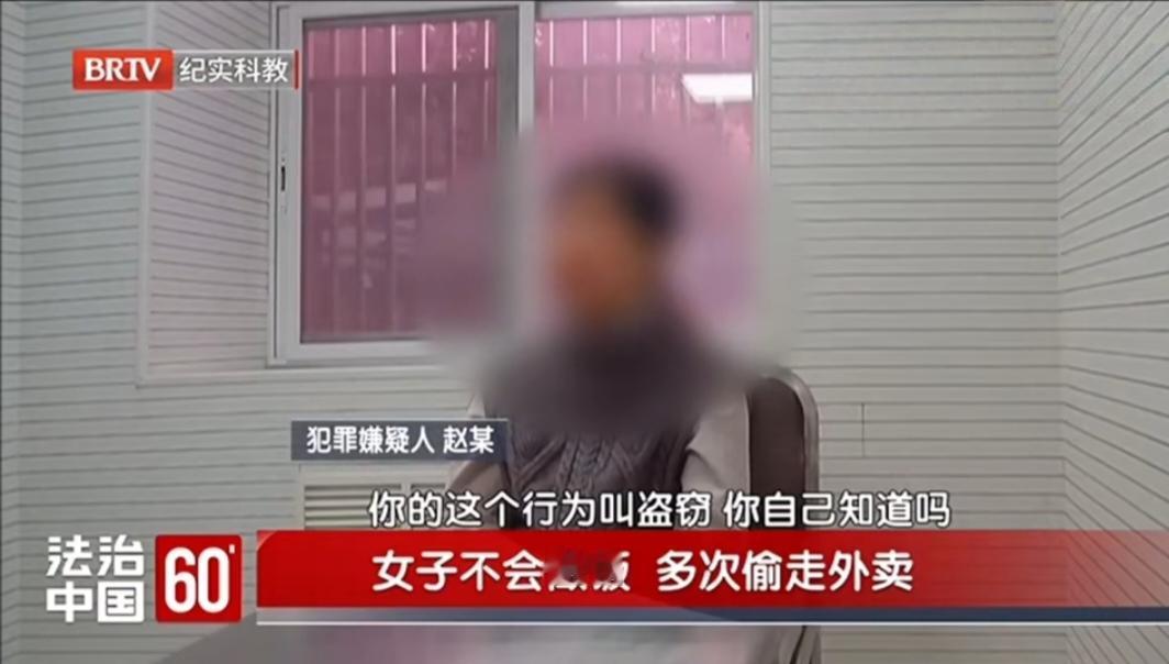 50岁女子多次偷外卖被刑拘!竟称自己不会做饭。 北京朝阳警方近期处理了一桩离谱的盗窃案。50岁的赵某打扮时尚,本科毕业还在外企工作过,转行做自媒体后积蓄颇丰,独自住着北三环两居室,却六次偷取外卖,如今因涉嫌盗窃被采取刑事强制措施。 监控里,赵某通常会戴着帽子、口罩到外卖存放架旁,假装打电话物色目标,等取餐人少了就淡定拿走外卖。被民警找到后,她起初还装糊涂,说不知道拿别人外卖是盗窃,最后才承认是因为自己不会做饭,还想占小便宜吃“白食”。 明明经济条件优厚,自己还单身,既不用赡养老人也不用抚养子女,却把外卖架当成“零元购”自提柜,多次伸手偷拿,实在让人匪夷所思。民警的普法教育后,赵某才认错道歉,但盗窃的行为已经触犯法律,等待她的将是法律的制裁。 这事儿也提醒大家,不管家境如何、学历高低,都不能触碰法律红线,占小便宜的心思千万不能有,否则迟早要为自己的行为买单。外卖盗窃 大妈偷外卖 偷外卖 外卖