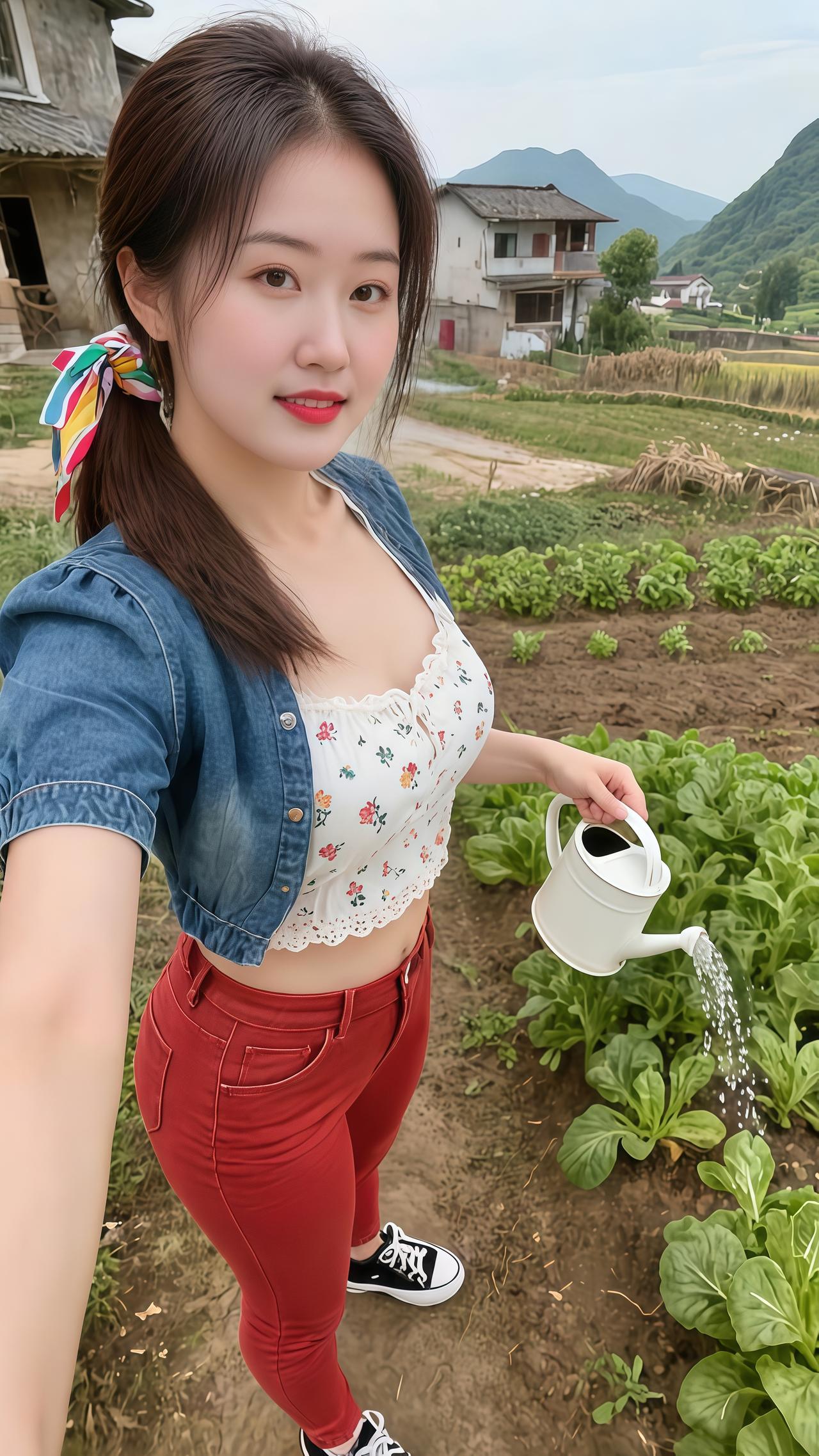 我的农村生活 山里姑娘 菜园 浇水