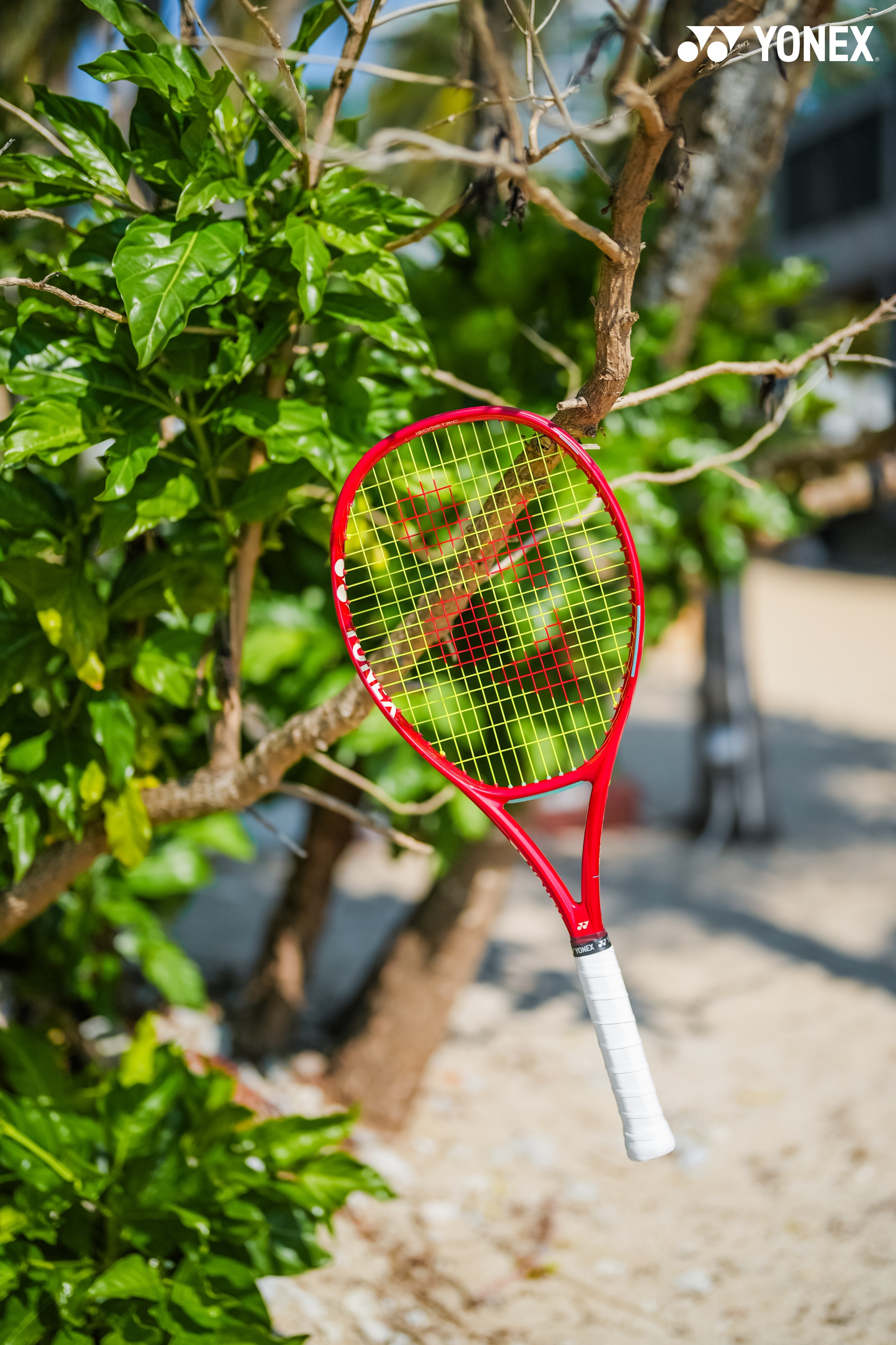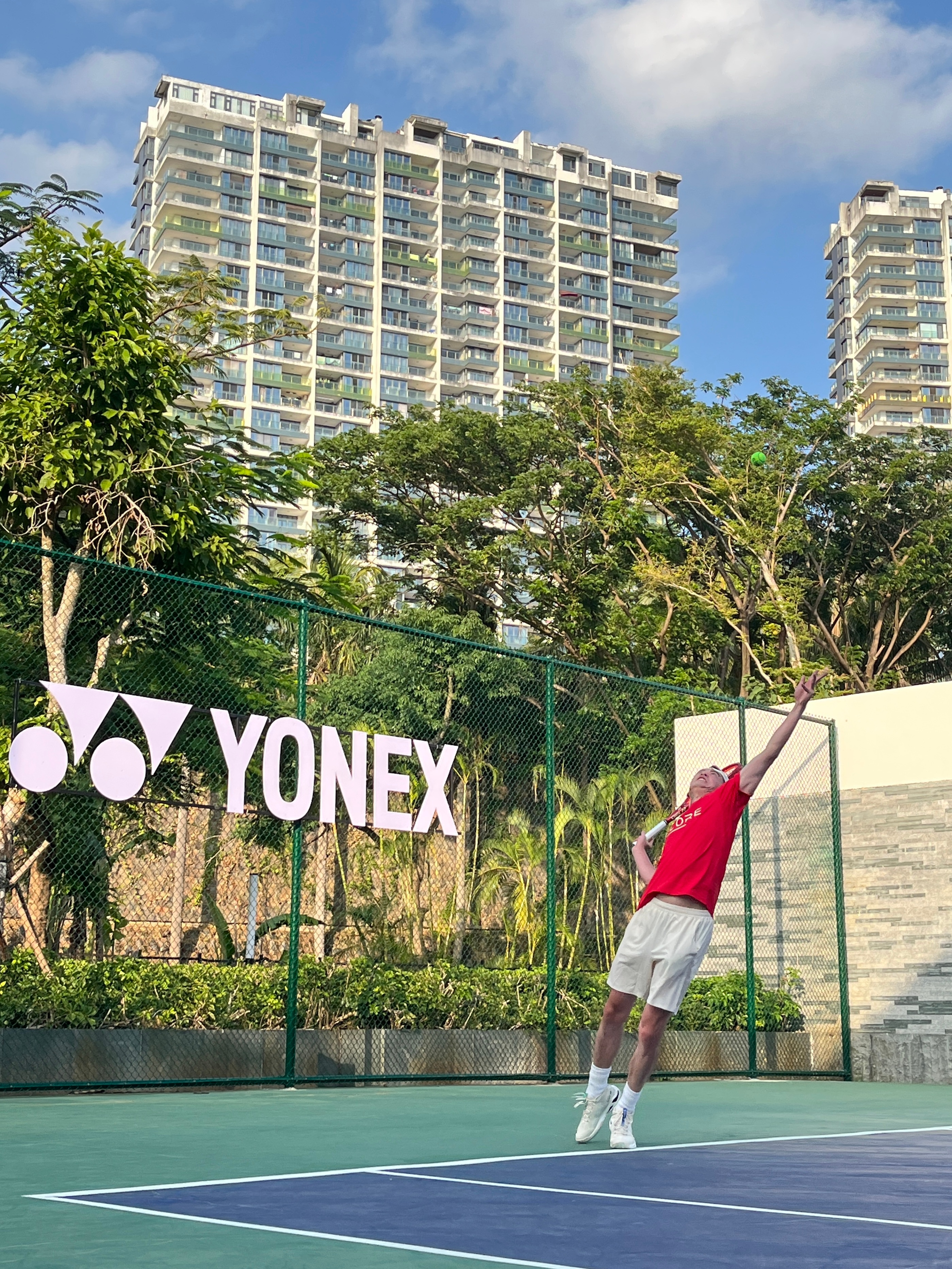 这个周末,三亚半山半岛的这片海,被YY家承包了!新年红主题配色的Vcore 08全新发布,一场红气逼人的“红曜聚”。Vcore 98、100、100L,三个型号试打下来,手感最惊艳的居然是280克的100L——拍头偏重和拍身总重量实现了互补,穿的是YY家的纯聚酯线,50x50的低磅数。出球力量比上一代Vcore大了不少,虽然不如Ezone 08大力王那么大,但关键是,操控性绝佳!一把完全陌生的球拍第一次上手,居然一点不需要磨合,击球甜区率极高,在底线几乎可以指哪打哪,现在的球拍黑科技真是一家更比一家强啊!明年我家娜娜有这款神器助力,梦一个跨年连胜一路连到澳网夺冠,不过分吧 三亚·三亚半山半岛洲际度假酒店