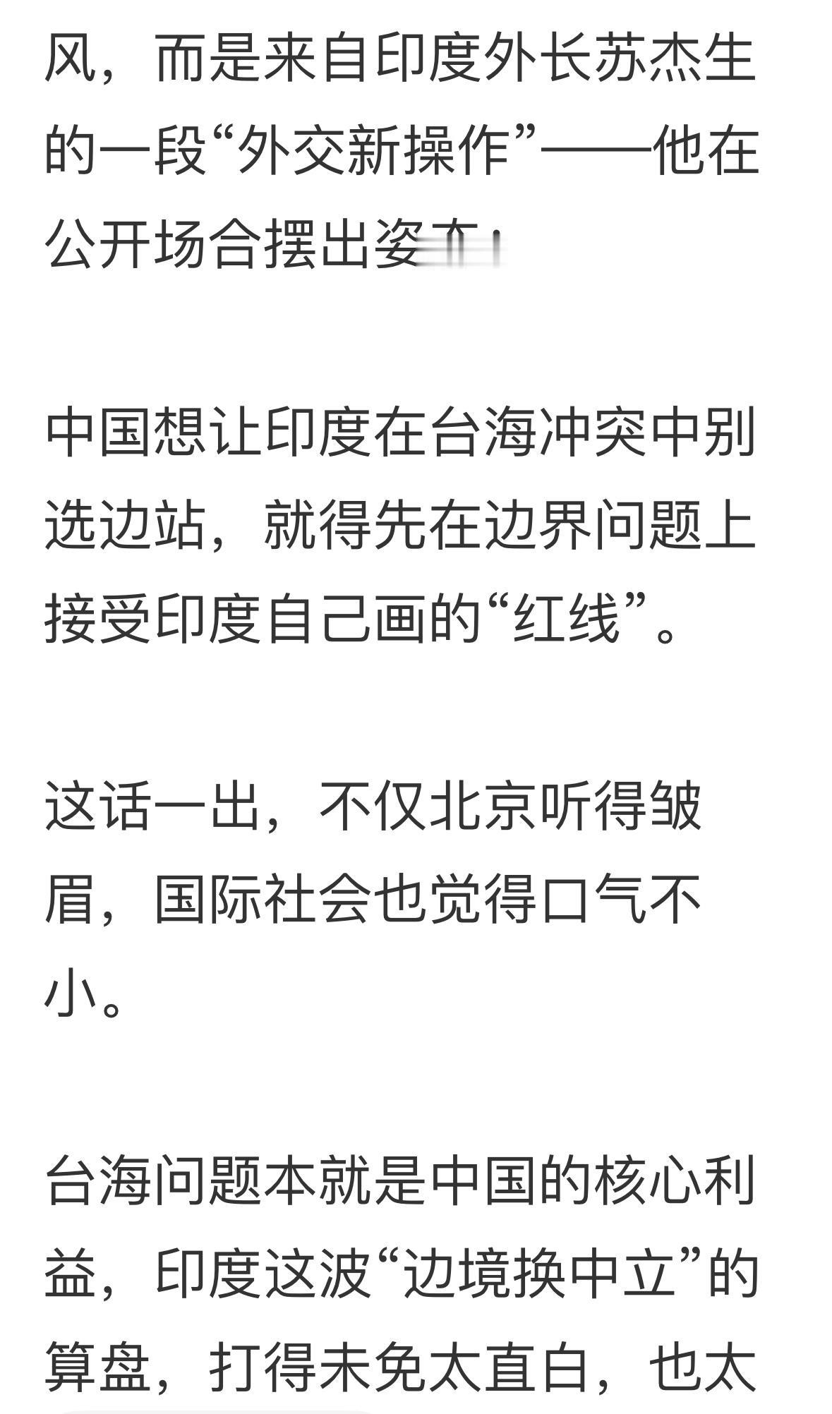 香港《卫报》12月21日消息,印度外长苏杰生近日就台海问题时表态,一旦中国武力攻