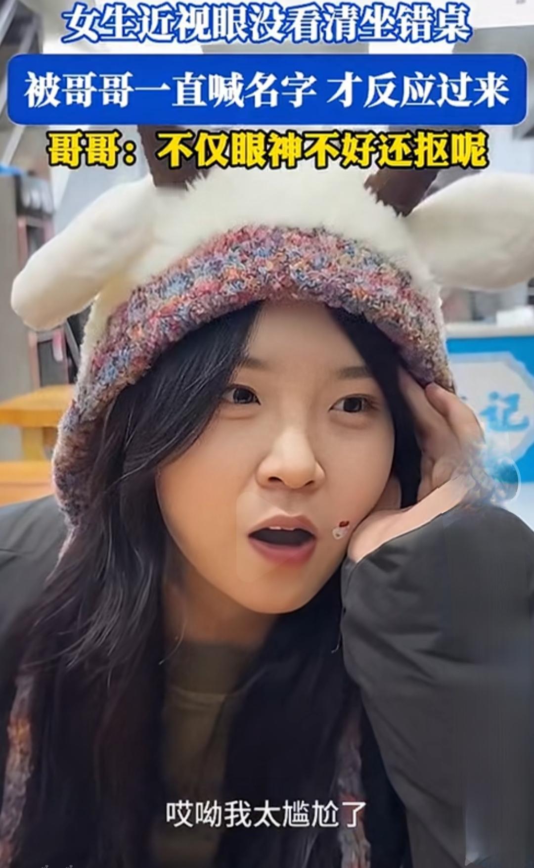 女生近视眼没看清坐错桌和陌生人吃饭,被哥哥一直喊名字才反应过来。哥哥:不仅眼神不好还抠呢。 你是不是也曾有过这种“尴尬瞬间”?明明只是个普通的吃饭场景,却因为一双“看不清”的眼睛,把自己送进了“喜剧现场”。更别说,哥哥那句“还抠呢”,简直点燃了整个笑点,让人忍俊不禁。 想象一下,一个女生因为近视,坐在陌生的桌子旁,点菜、吃饭,完全看不清楚对面的人是谁。你是不是也会心跳加速?怕被误会,怕闹出笑话。结果,哥哥一边喊着“你坐错桌了”,一边用调侃的语气说:“还抠呢,眼神不好还抠门。” 这句话,瞬间戳中了生活的“真相”。很多时候,我们的“看不清”不仅仅是眼睛的问题,更像是“看不清”人心、看不清人生的迷雾。我们总喜欢用表面去判断一个人,结果却常常被“真相”狠狠打脸。女生的近视,就像是一面镜子:看得不清,容易误会,也容易被误会。 而“还抠呢”这个词,表面上像是调侃,但其实暗藏着人性的小智慧。是不是我们每个人都在用“节俭”或“斤斤计较”去定义别人?其实,有时候,只是怕花错钱,怕浪费时间。我们都在用“标签”去给别人贴“身份”,却忽略了每个人背后,都有一段不为人知的故事。 更妙的是,这个“坐错桌”的小插曲,反映出一个更深层次的社会现象:我们在生活中常常“误入歧途”,走错“人生的座位”。但只要我们敢于认错,勇于调整,就一定能找到属于自己的“正确位置”。这不,也正是生活的魅力所在——不断犯错、不断修正,直到找到那个最适合自己的“桌子”。 所以啊,别只盯着“看不清”的表象,更要学会用心去“看清”这个社会的多面性。每个人都在用自己的方式“生活”,用“近视”看世界,可能会错过很多美好,但也能看清很多真相。 你有没有遇到过类似的尴尬?或者被“标签”误导的经历?快在评论区吐槽一下吧!让我们用幽默和智慧,一起破解生活中的“迷雾”,迎接更真实、更精彩的自己。故事