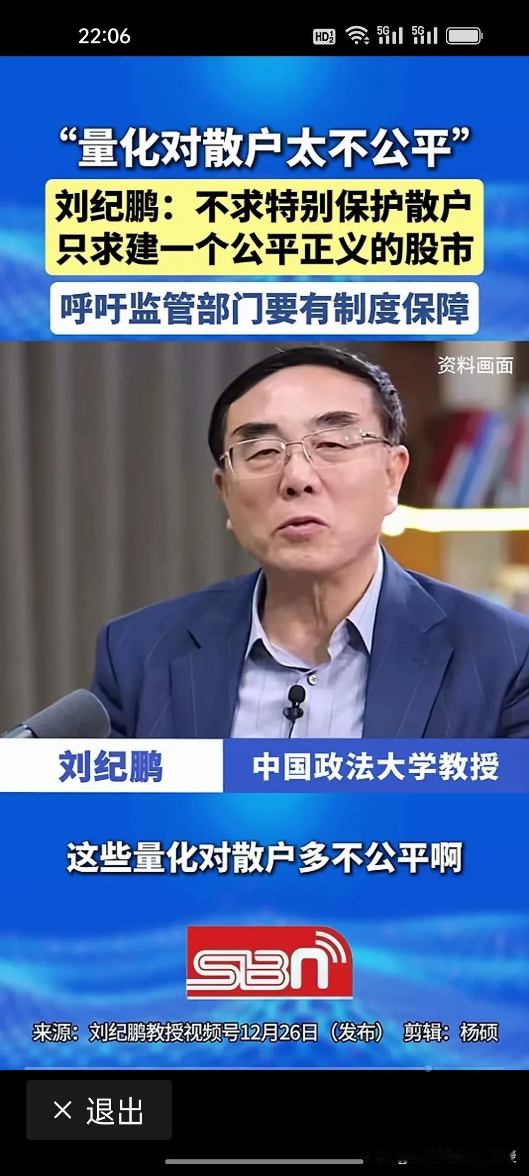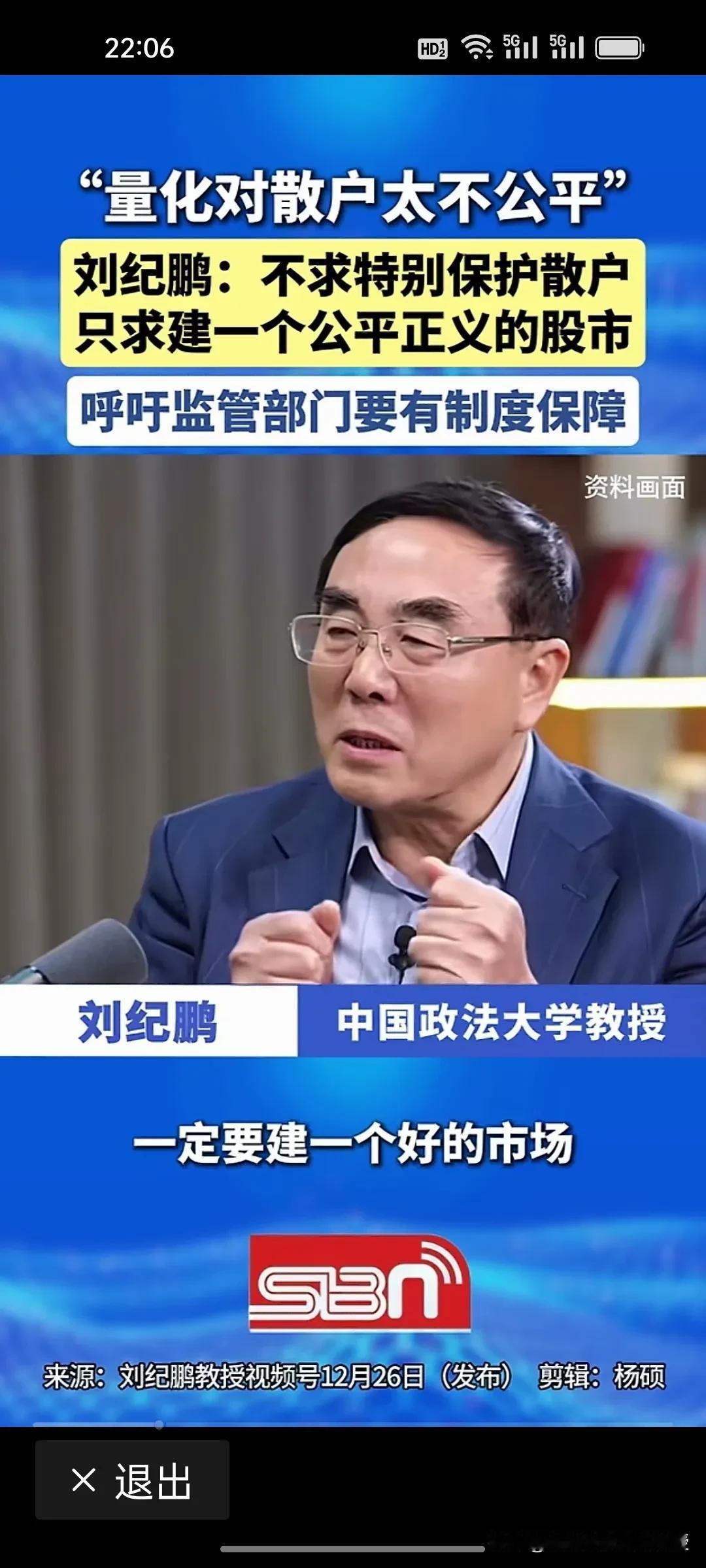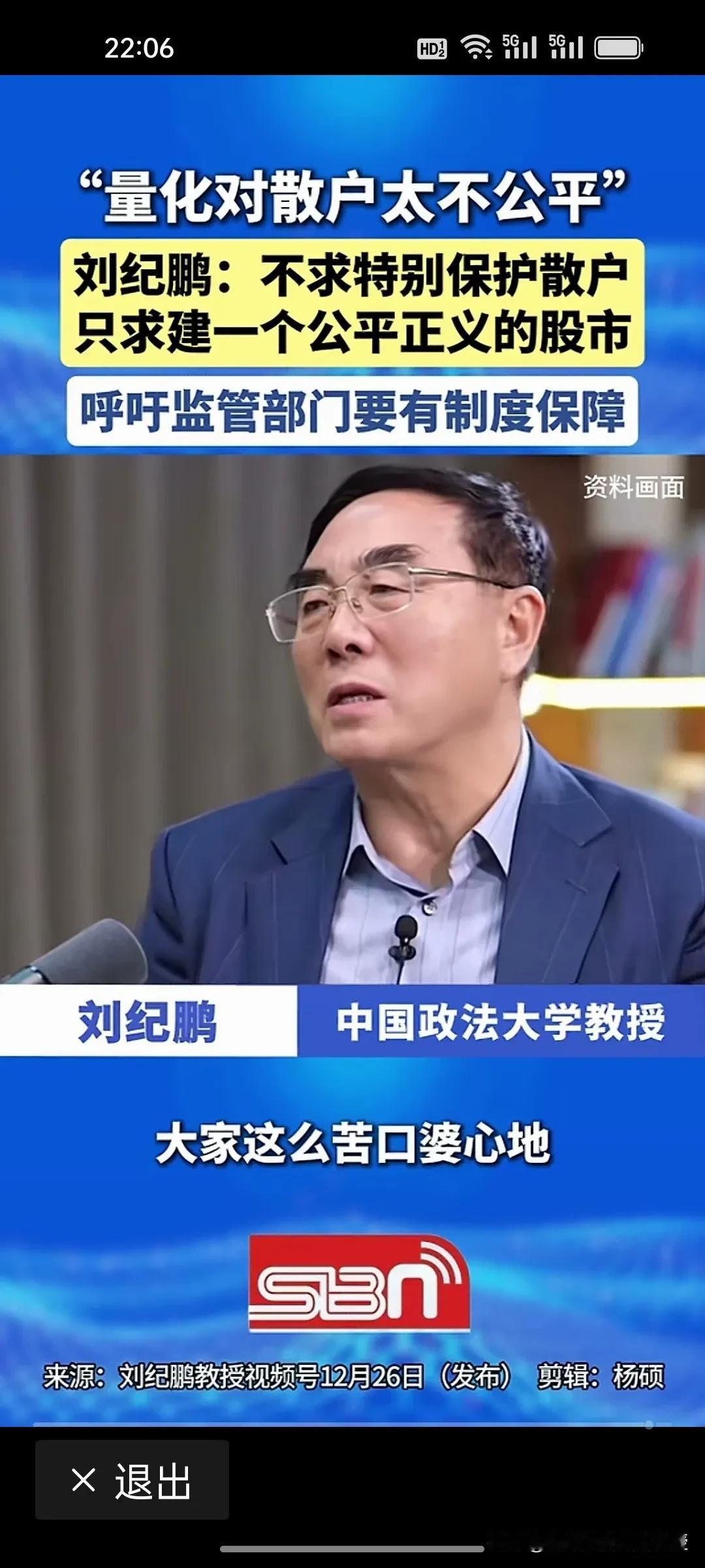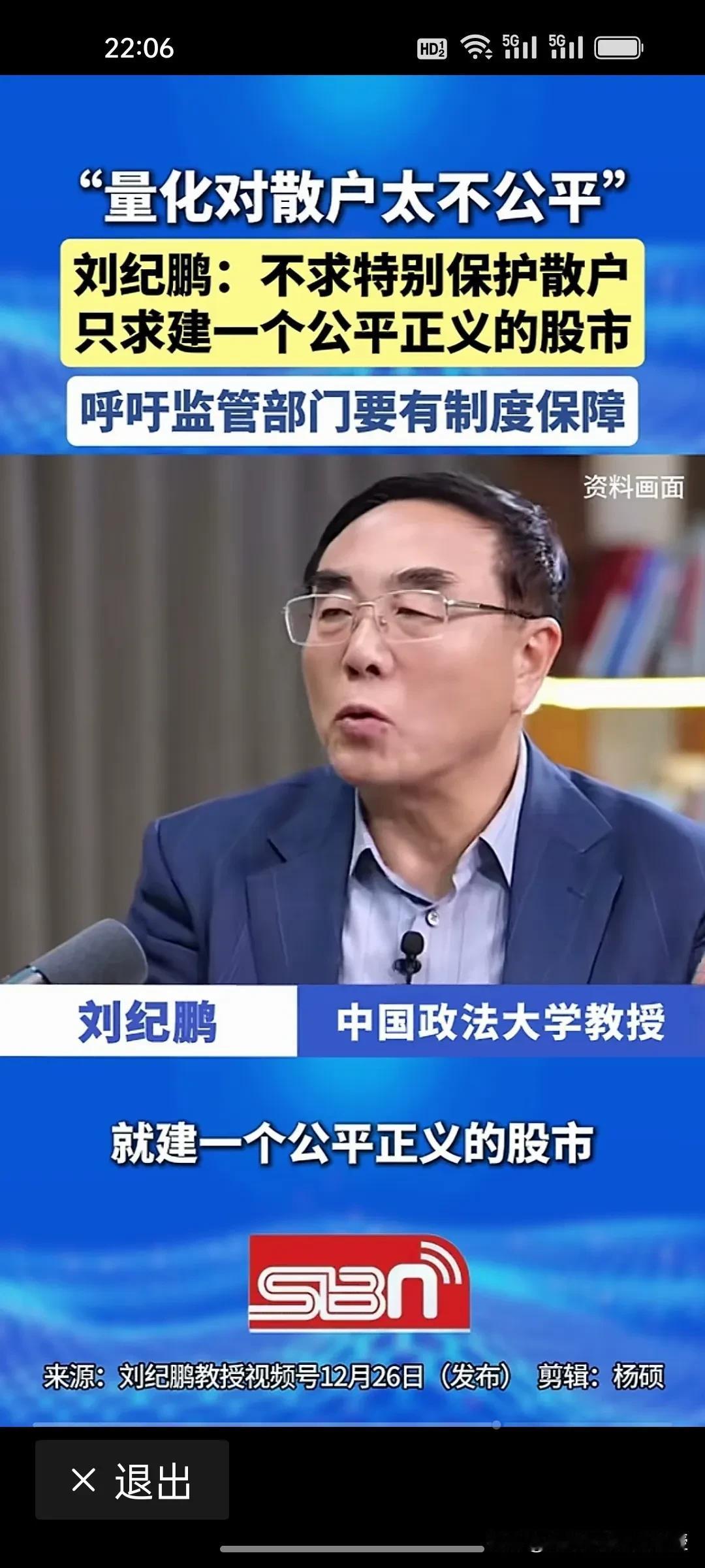 刚刚看到,刘纪鹏教授又喊话了!他直言,不求特别保护散户,只求建一个公平正义的股市