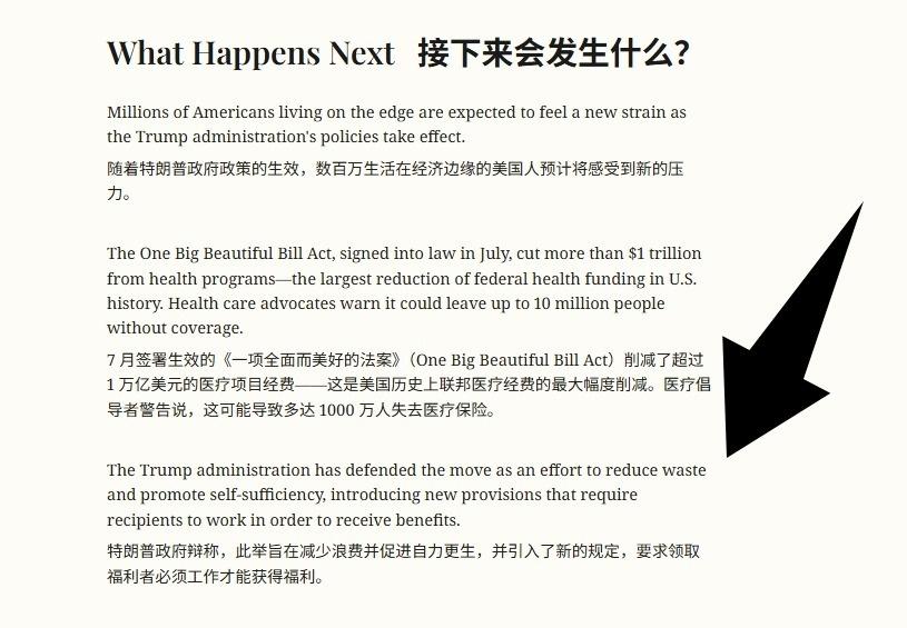 看,《新闻周刊》关于斩杀线报道。 重点不是斩杀线,重点是什么? “《新闻周刊》 已通过电子邮件联系美国国务院,请求置评。” “随着特朗普政府政策的生效,数百万生活在经济边缘的美国人预计将感受到新的压力。7 月签署生效的《一项全面而美好的法案》削减了超过 1 万亿美元的医疗项目经费——这是美国历史上联邦医疗经费的最大幅度削减。医疗倡导者警告说,这可能导致多达 1000 万人失去医疗保险。特朗普政府辩称,此举旨在减少浪费并促进自力更生,并引入了新的规定,要求领取福利者必须工作才能获得福利。” 你看他想说什么? 他想说的是:美国之所以存在斩杀线,都怪特朗普。 那这种情况持续那么多年了,能怪特朗普?你美国媒体要脸不要? 这不重要,重要的事要“搞出一种印象都怪特朗普” 如果今天是拜登执政,这个新闻报道绝对不是这样的, 这个新闻报道就会转而报道为“中国怎么怎么不行”。 写个剧本,他就照着这样演。