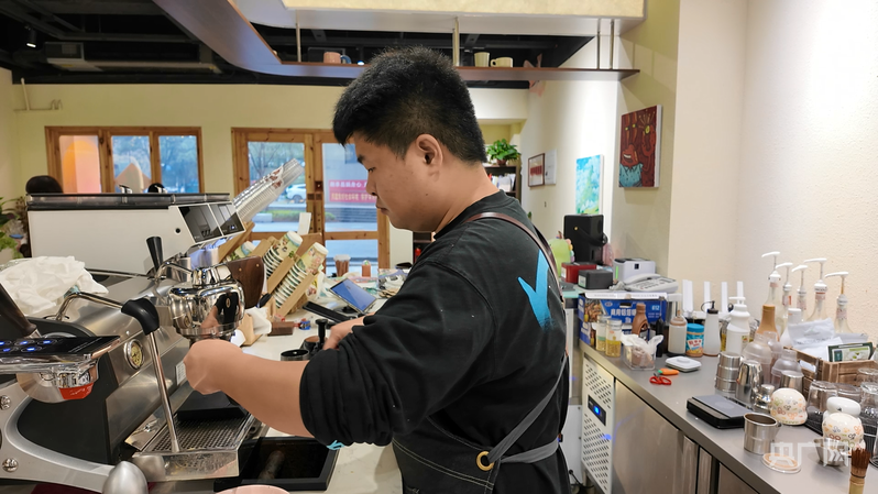 丁阳正在制作咖啡(央广网记者黄珂岚摄)