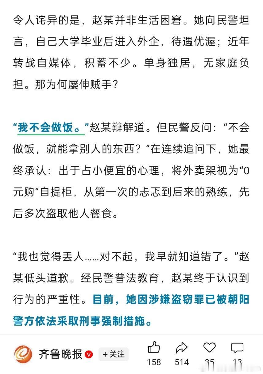 50岁女子偷外卖被刑拘50岁单身女子多次偷外卖被刑拘,偷外卖的理由是她不会做饭