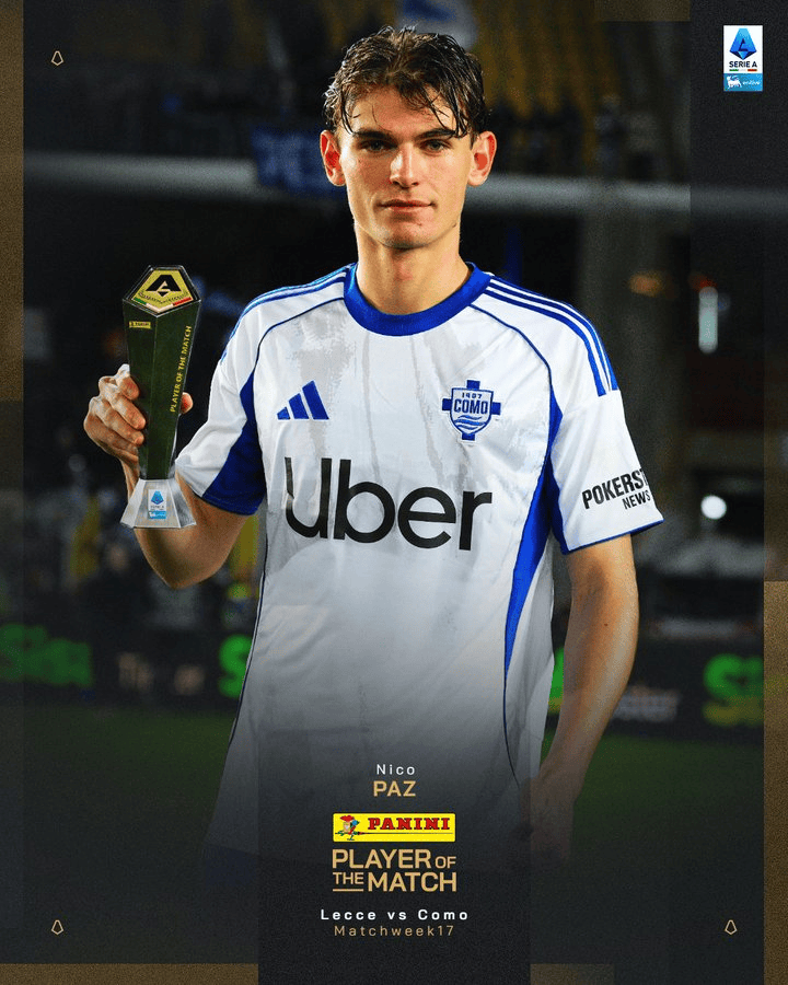 虎扑12月27日讯意甲第十七轮,科莫客场3-0战胜莱切。尼科-帕斯首发登场,贡献了一传一射,帮助科莫客场带走三分。赛后,他当选为本场比赛官方评选的全场最佳球员。
