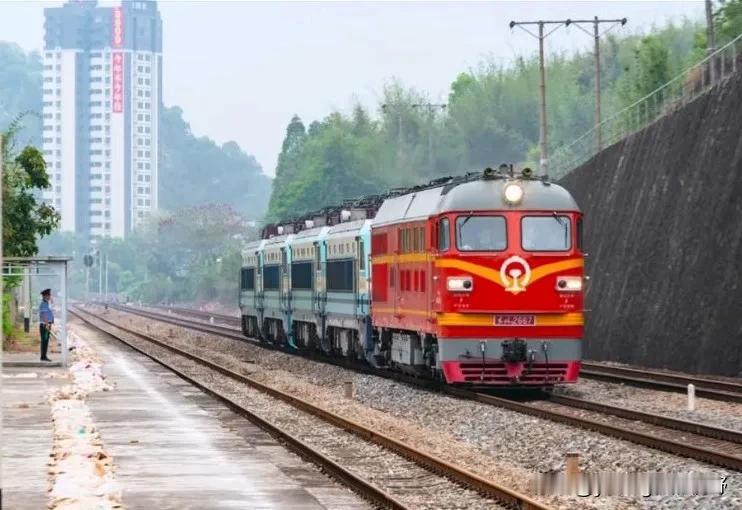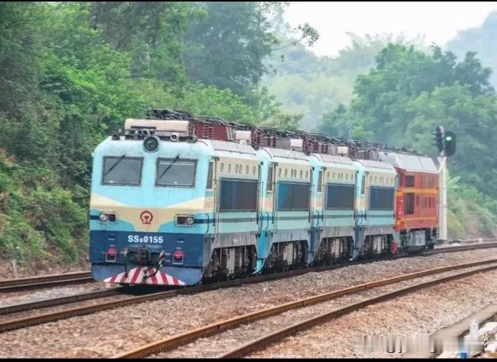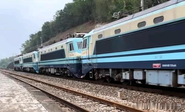 电力机车驶上非电气化铁路?电力机车的报废之路。这是今年初广铁集中报废韶山8机车时,由东风4B橘子牵引着四节韶山8机车从广州前往春湾的场景。韶山8机车在广铁服务了三十多年,也是广铁的功臣。但与人一样,车也终会有老的那一天。当这一天来临的时候,他们也就退出了工作场所,由同样是老机车的橘子拖向春湾存放场。橘子在执行这次任务的时候,应该也能想象到自己在不久的将来也会面临同样的命运了吧?