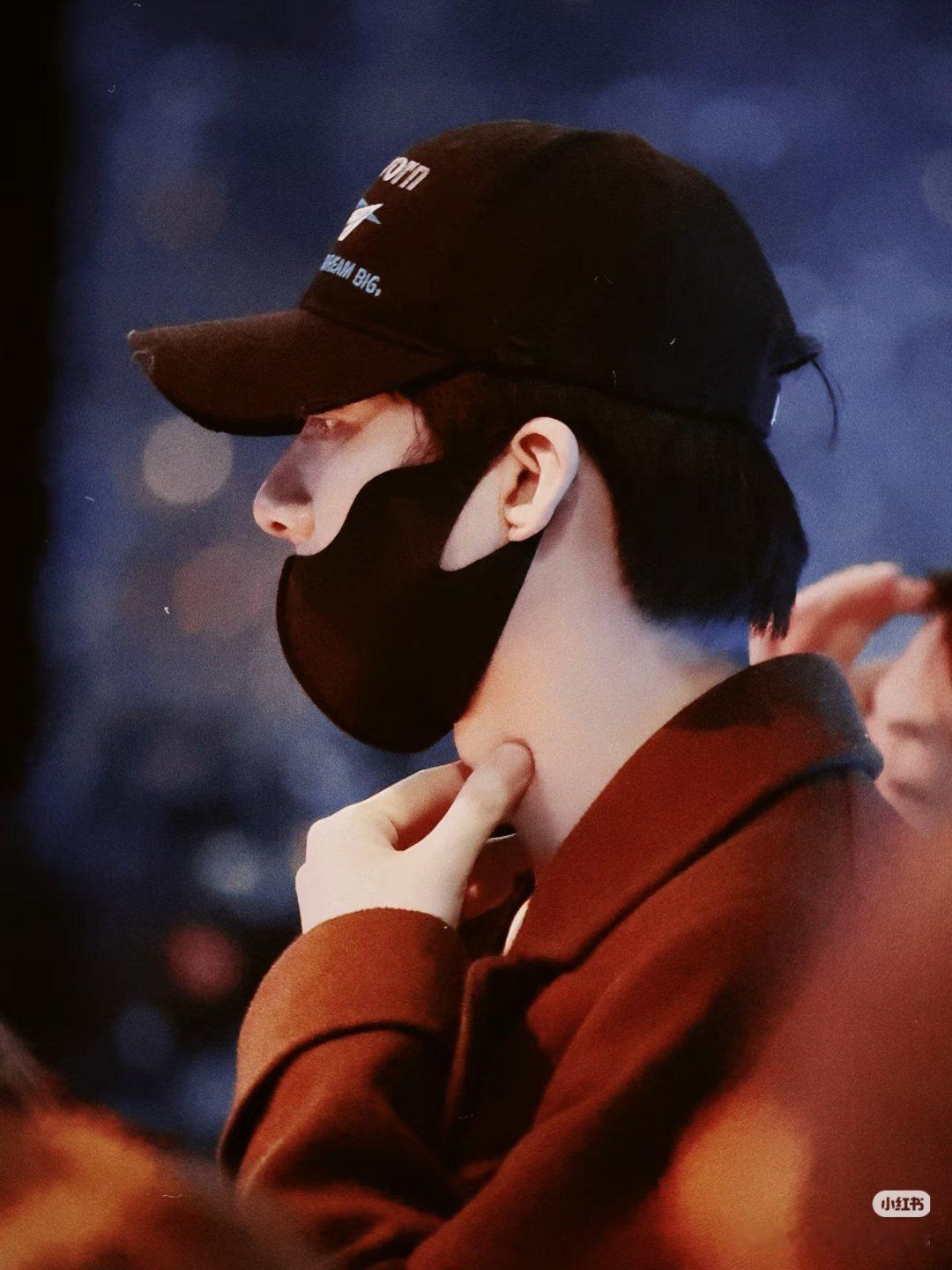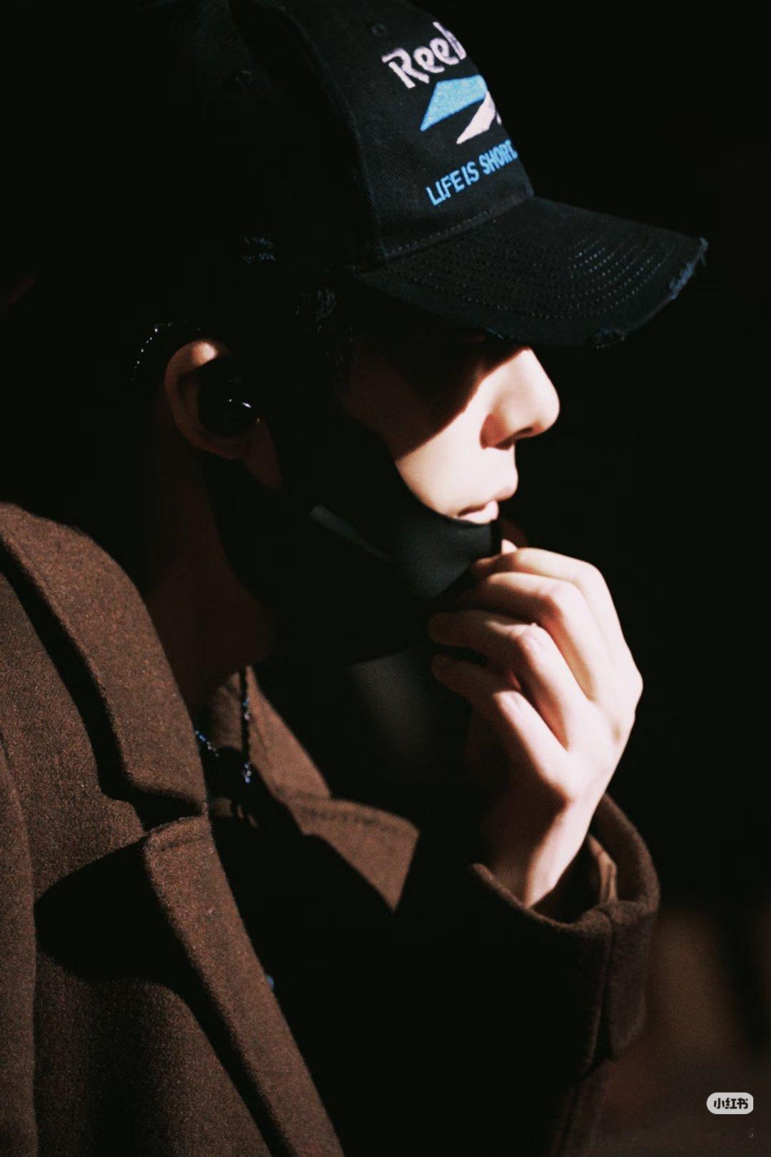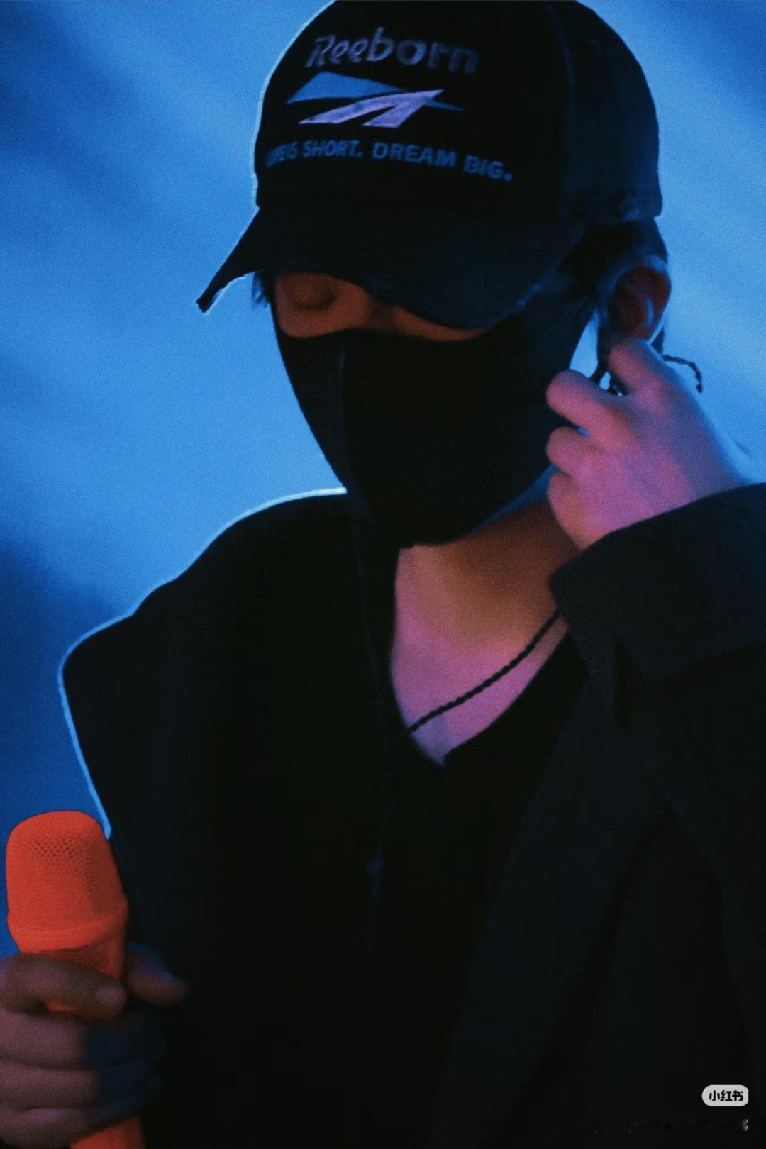 焦糖棕大衣搭配黑色棒球帽,抬手调整口罩的瞬间,侧颜线条利落又精致;蓝调光影里轻触耳返的模样,又添了几分舞台前的沉静氛围感,每一个小细节都藏着独特的帅气✨