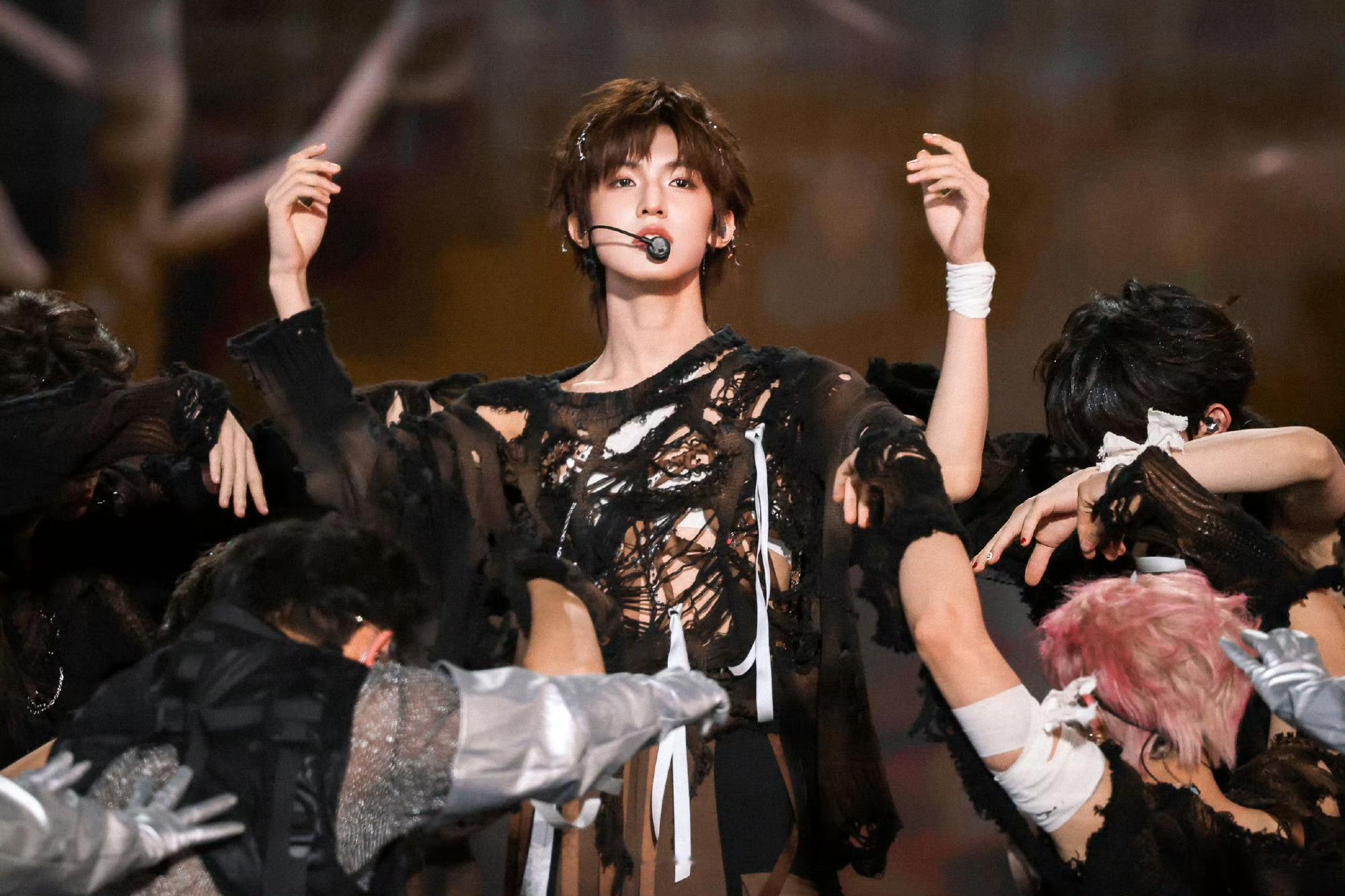 张极新音舞台的绷带造型太绝了!宽肩窄腰完美驾驭,利落又贵气,说一句富有且大方没人反驳吧!张极绷带造型富有且大方