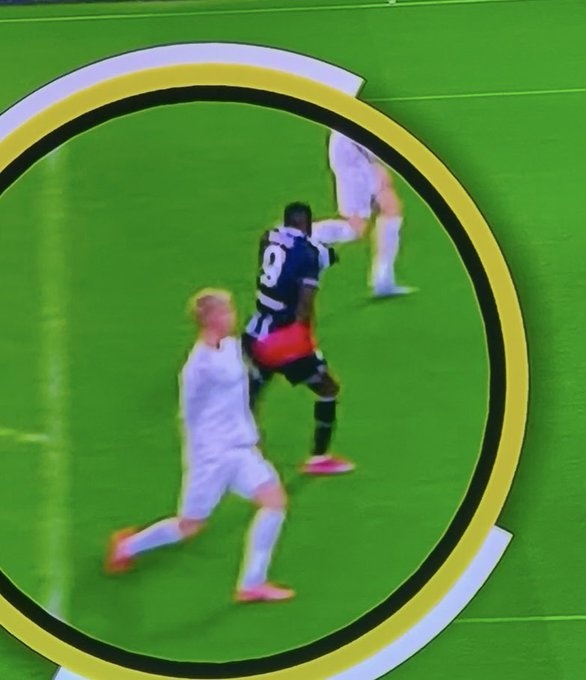 这个很明显手球把球挡下来也不吹掉,意假还是有说法的