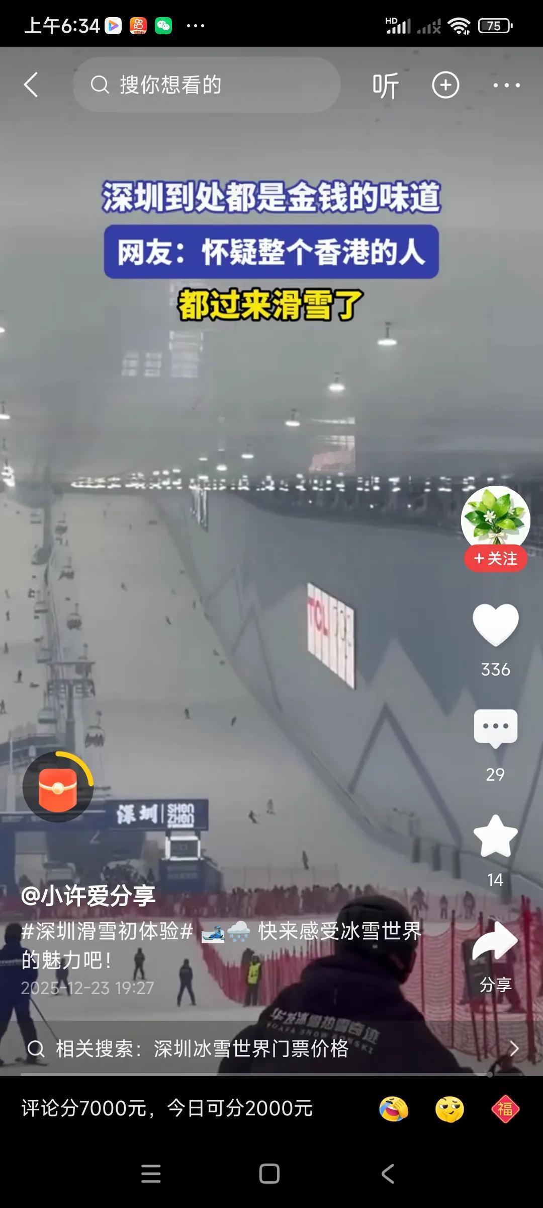 不用回东北了, 不用去哈尔滨了,, 深圳也有个滑雪场,,, 大深圳牛啊,什么都不缺了,, 昨天和朋友吃饭,朋友说在深圳,可以吃遍天下美食,,各个国家,各个地区,特产美味,在深圳都开有连锁店,,, 关健是要有钱,这才是重点,,,[捂脸][捂脸]