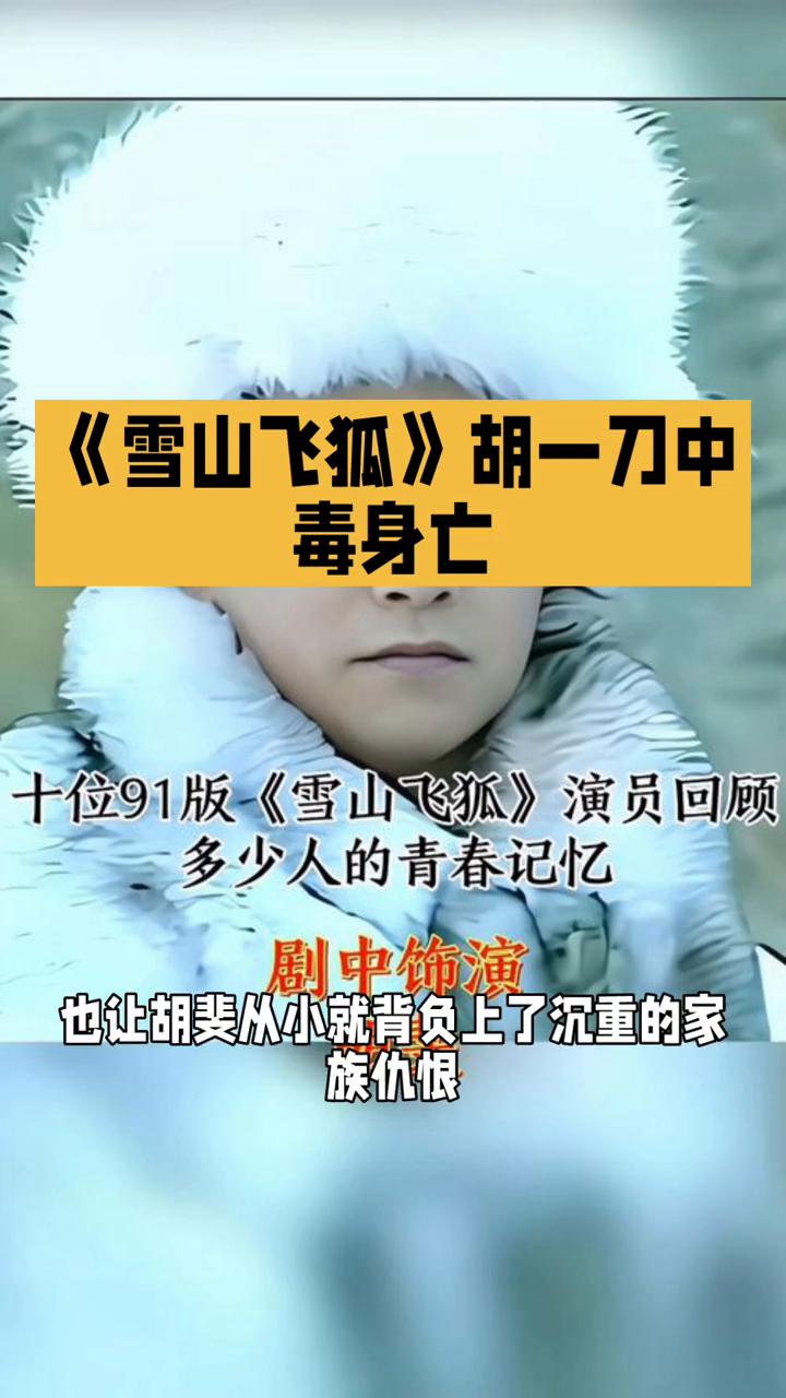 《雪山飞狐》胡一刀中毒身亡。 在85版《雪山飞狐》第二集里,血雨腥风起,恩怨情仇深。在85版《雪山飞狐》第二集里,剧情的紧张氛围进一步升级,胡、苗、范、田四家的百年恩怨在这集里有了更激烈的碰撞。 胡一刀与苗人凤在雪山展开了一场惊心动魄的激战,两人武艺高强,刀法凌厉,在雪地中你来我往,难分高下。这场激战不仅展现了他们超凡的武艺,更让他们彼此产生了惺惺相惜之感,引为知己。 然而平静之下暗流涌动,胡夫人即将临盆,在这风雪交加的恶劣环境中只能请来兽医阎基代为接生。田归农得知此事后暗中收买阎基,企图在接生过程中加害胡一刀,其心狠手辣可见一斑。 胡一刀深知四家恩怨的根源,为了化解这长达百年的仇恨,他将当年闯王兵败后留下的秘密写在一封信中,欲告知苗人凤。这封信承载着胡一刀化解恩怨的诚意与决心,然而阎基却私自扣下了这封信,使得真相无法及时传达,为后续的悲剧埋下了伏笔。 田归农的阴谋并未就此停止,在胡一刀与苗人凤再次决斗时,他趁机在胡一刀的刀上涂毒。胡一刀在与苗人凤的激战中不慎被毒刀所伤,尽管他武艺高强,但毒药迅速发作,最终不幸中毒身亡。胡夫人见丈夫惨死,悲痛欲绝,毅然选择殉情而去,只留下刚出生的儿子胡斐。 这一系列的变故让胡家瞬间陷入了绝境,也让胡斐从小就背负上了沉重的家族仇恨。这集剧情紧凑,情节跌宕起伏,将江湖的险恶、人性的复杂展现得淋漓尽致。胡一刀的侠肝义胆、苗人凤的豪爽正直、田归农的阴险狡诈都在这集中刻画得入木三分。观众在为胡一刀夫妇的悲惨遭遇感到痛心的同时,也对胡斐未来的命运充满了担忧和期待。