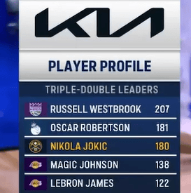 根据数据统计,约基奇拿到生涯第180记三双,距离历史第二的大O仅差一次。