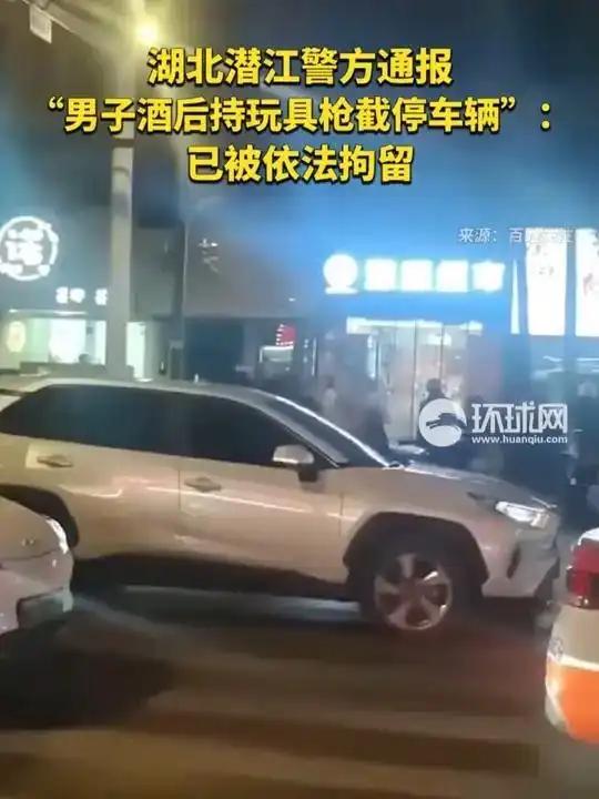 惊!湖北潜江街头,醉酒男持“枪”截停车辆 12月27日,湖北潜江的一则警情通报,让当地街头的一场闹剧浮出水面,引发众人关注。 12月26日晚9点左右,潜江市园林街道的街头,上演了一幕令人胆战心惊的场景。一名无业男子,在醉酒的“迷糊劲儿”里,手持一把玩具枪,竟毫无缘由地截停了一辆过往车辆。从当时流传出的视频画面中可以看到,这名男子站在斑马线上,手中的“枪支”直直指向一辆白色越野车的驾驶室,那架势仿佛下一秒就要做出什么危险举动,过往行人纷纷侧目,气氛紧张到极点。 好在警方迅速行动,及时介入处理。潜江市公安局在接到报警后,第一时间赶到现场,将这名男子控制住,避免了可能发生的严重后果。目前,该男子已被依法拘留,等待他的将是法律的制裁。 这起事件也给我们敲响了警钟,醉酒闹事不仅危及他人安全,更是对自己和家庭的不负责。希望大家都能引以为戒,饮酒适量,切莫因一时冲动,做出让自己后悔莫及的事。