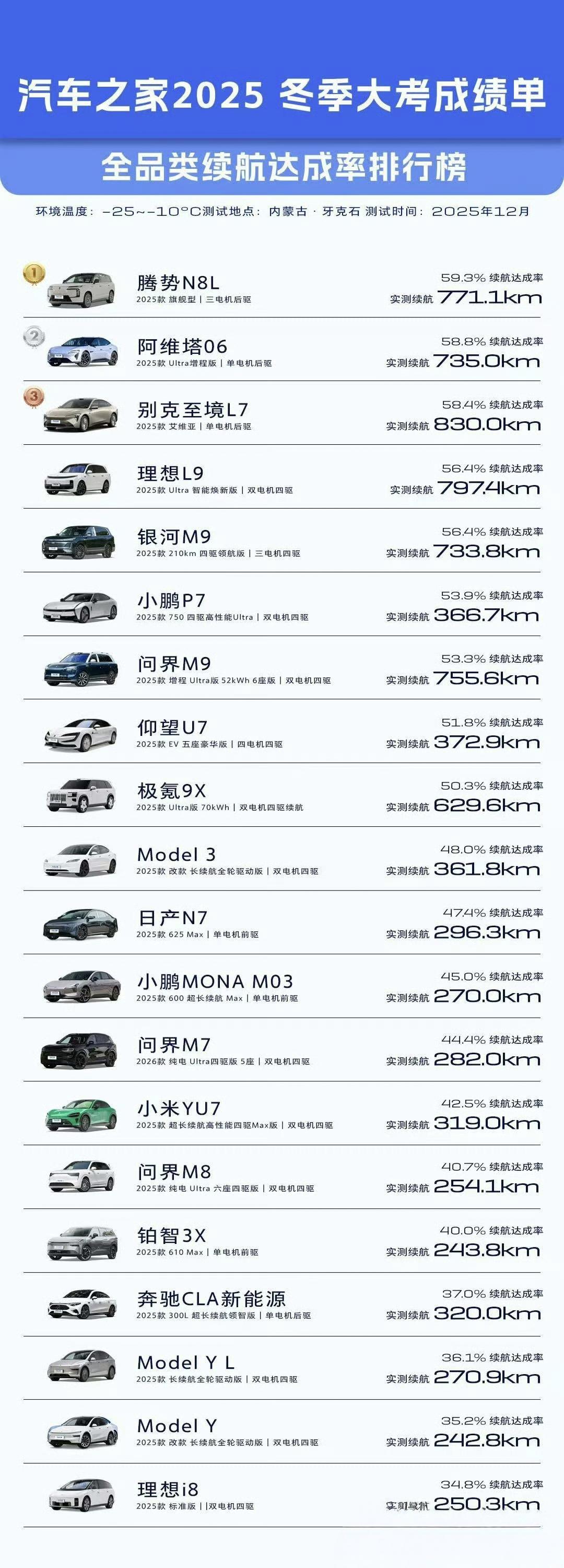 汽车之家2025年冬测,50+车型“冬季大考”成绩公布,谁是冬测之王?对纯电