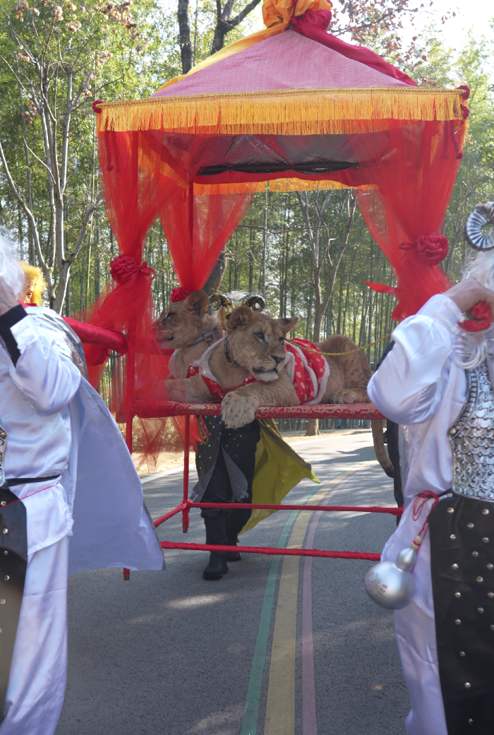 大皖新闻讯工作人员装扮成影视剧中的妖怪抬着花轿,上面有两只小狮子,身后还有人牵着水牛、马等动物在动物园里巡游……近日,这样一段视频在网上引起了不少网民的关注。有网民评论,“大王叫我来巡山。”“动物园都这么卷了吗?”也有网民询问,“狮子这样危险吗?”工作人员回复表示,小狮子才6个月大,已经拴在花轿上面。