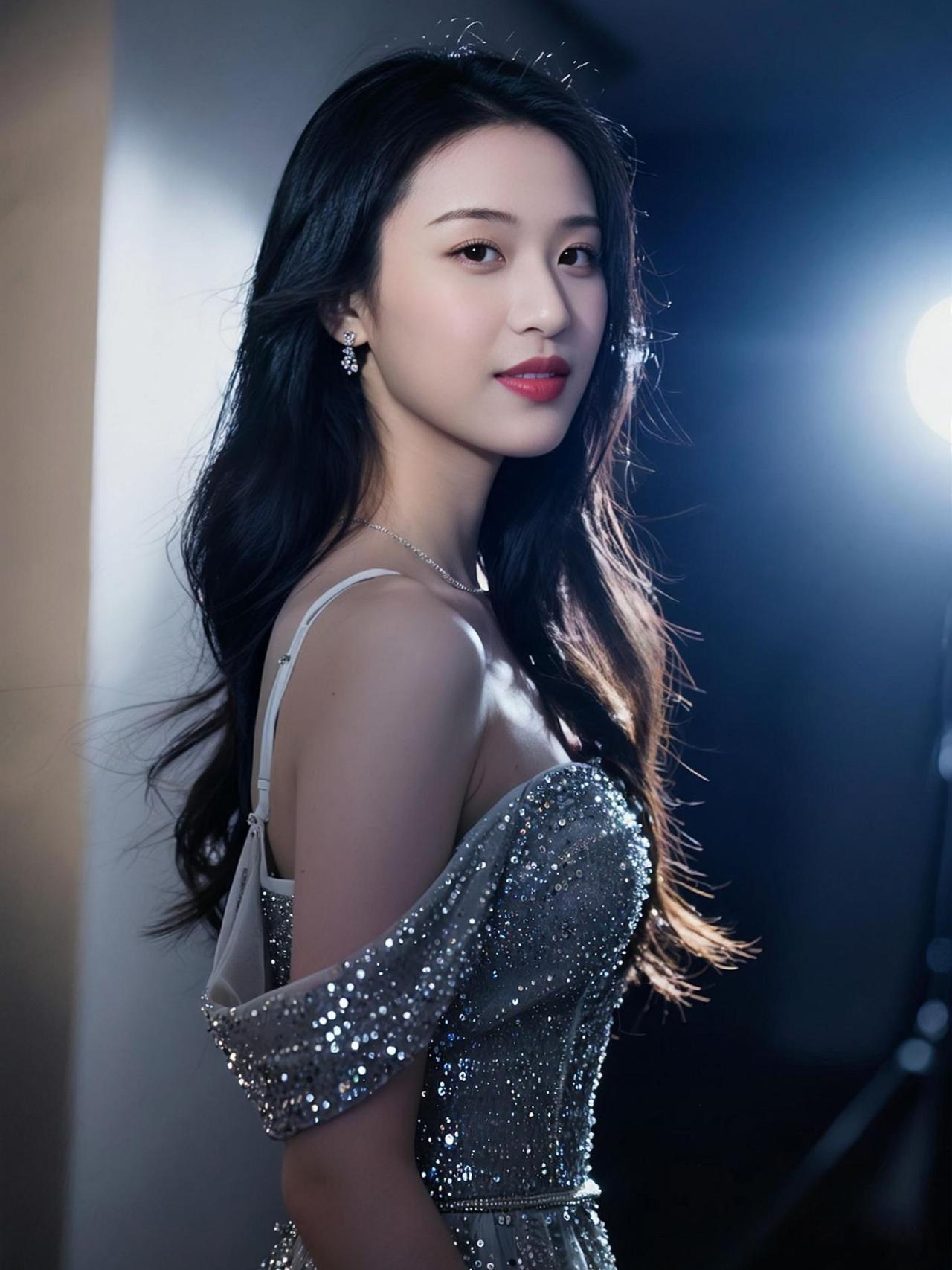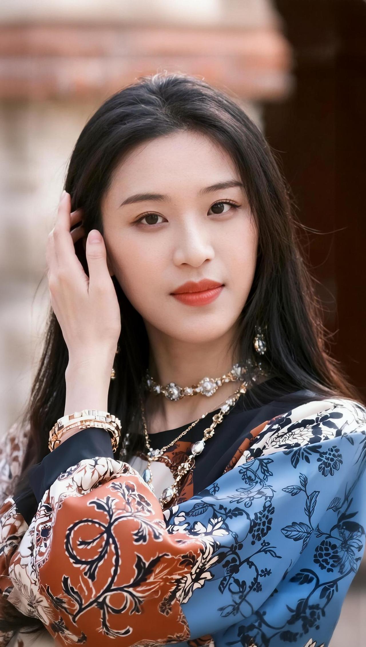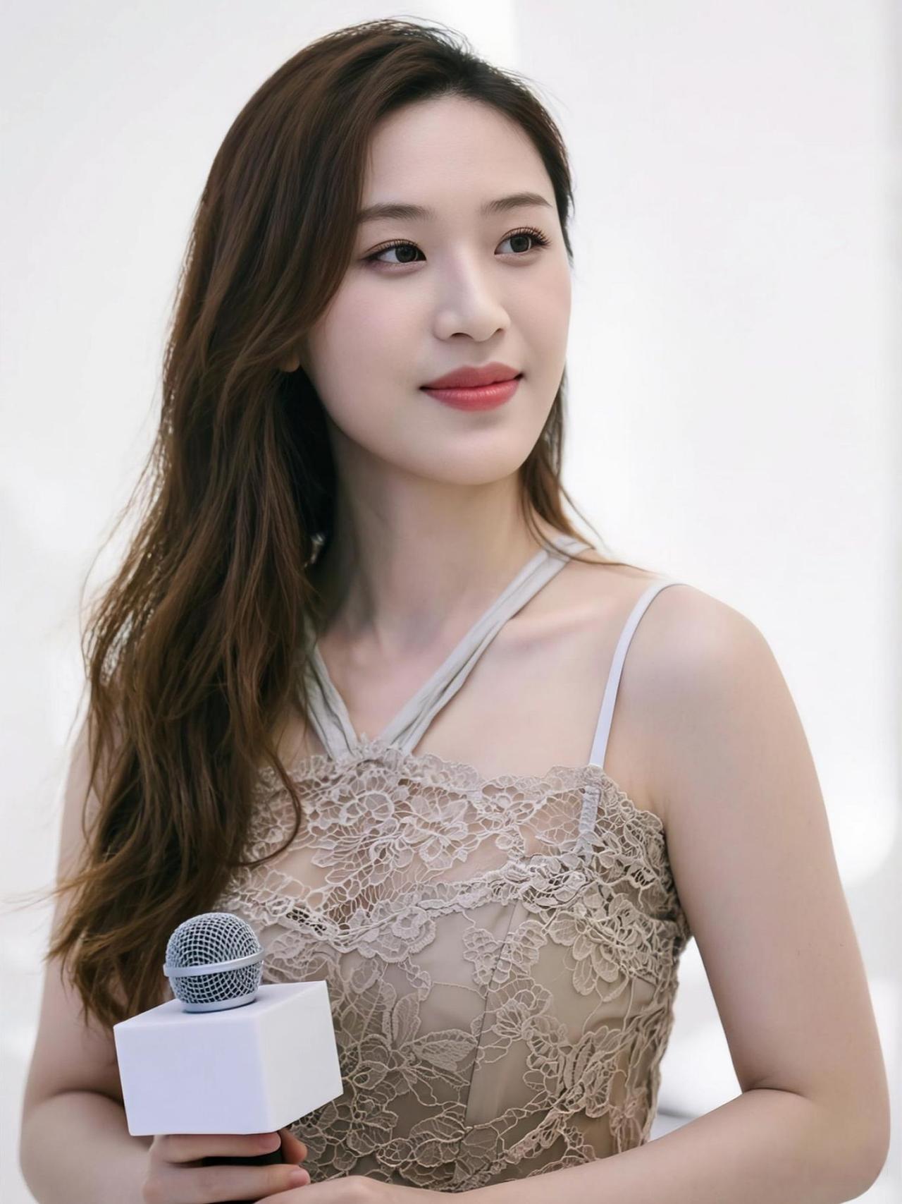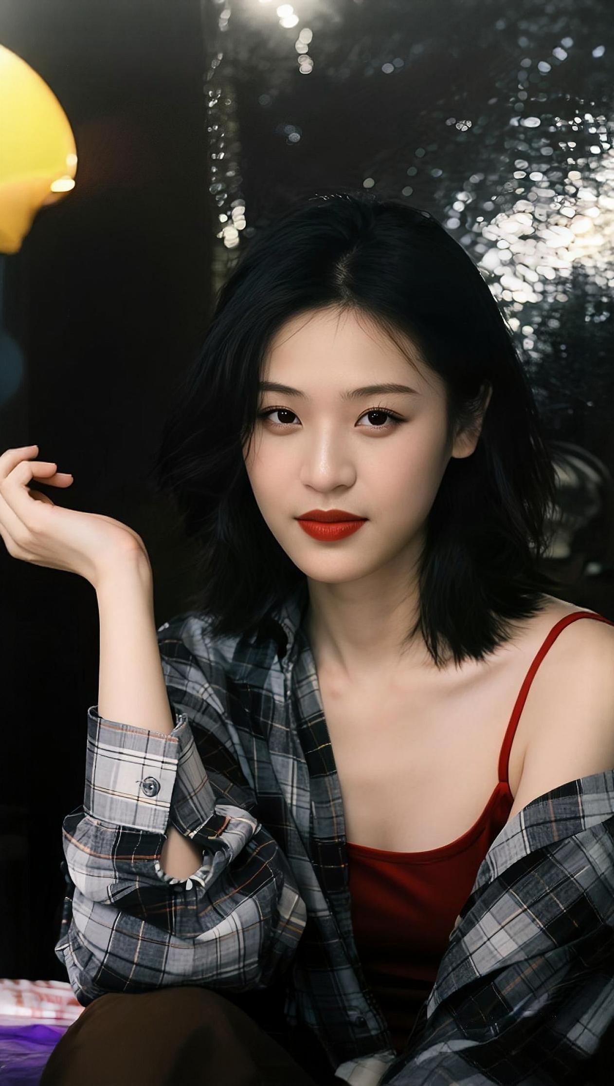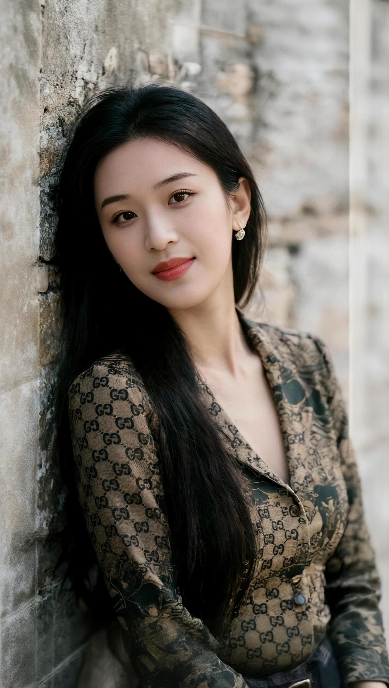 黑蕾丝捻着光的流苏 卷住一缕笑的弧度 发梢垂落的温柔 漫过焦糖色的墙隅 唇齿间漾开的红 是揉碎的晚霞吻过的甜 指尖轻扬的纱 飘成暗夜里的蝶 眸光撞碎了灯影 在蕾丝的纹路里蜿蜒 这一刻的明艳 是不被定义的诗篇 青丝垂缕衬韶光, 玉手轻扶鬓畔香。 眸底清波凝晓露, 唇间丹色染秋霜。 珠璎叠颈添妍丽, 锦缎裁衣映靓妆。 浅笑嫣然风自软, 嫣然一顾动潇湘。