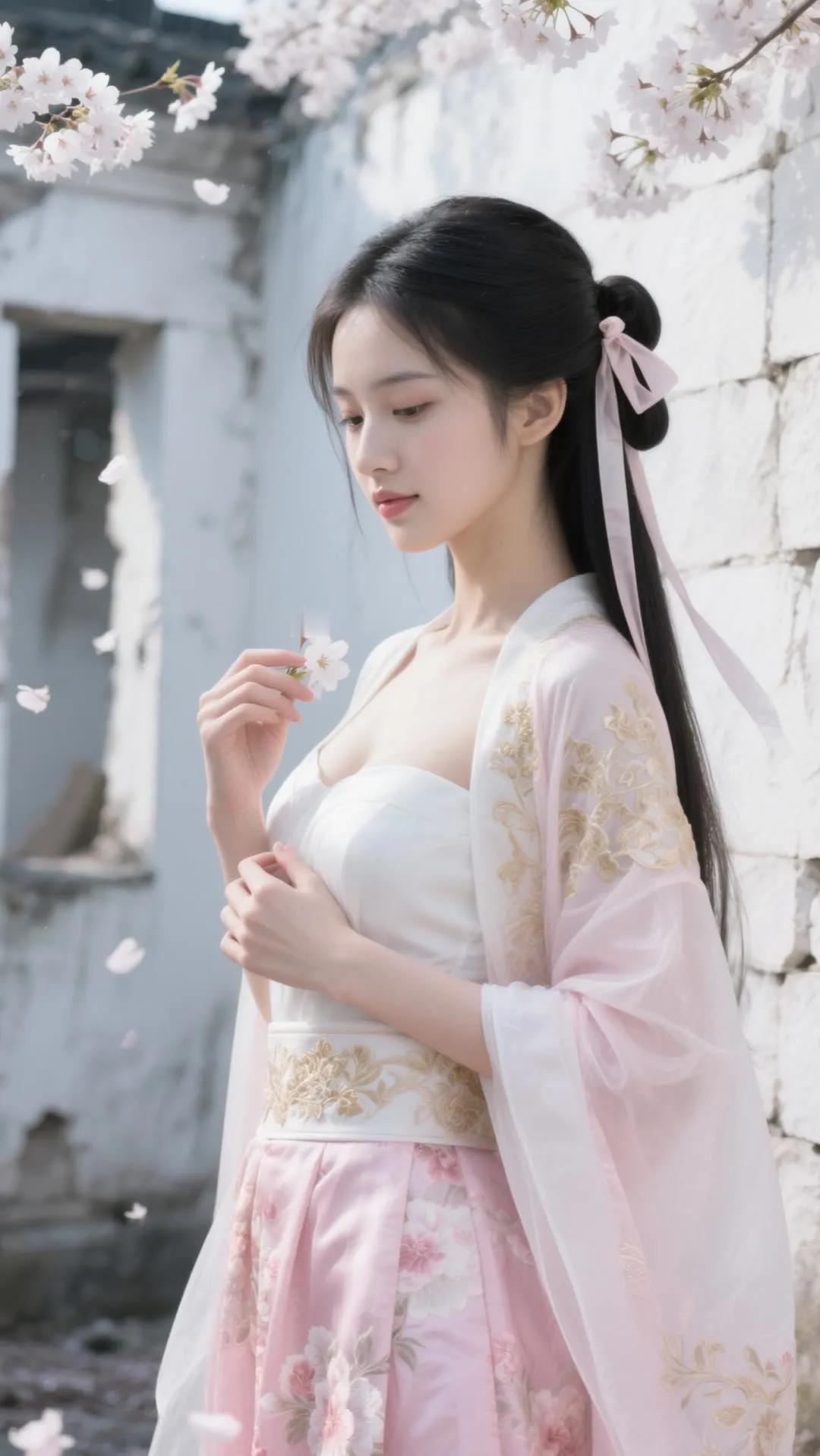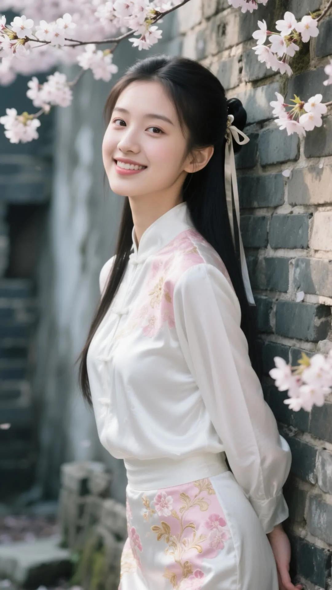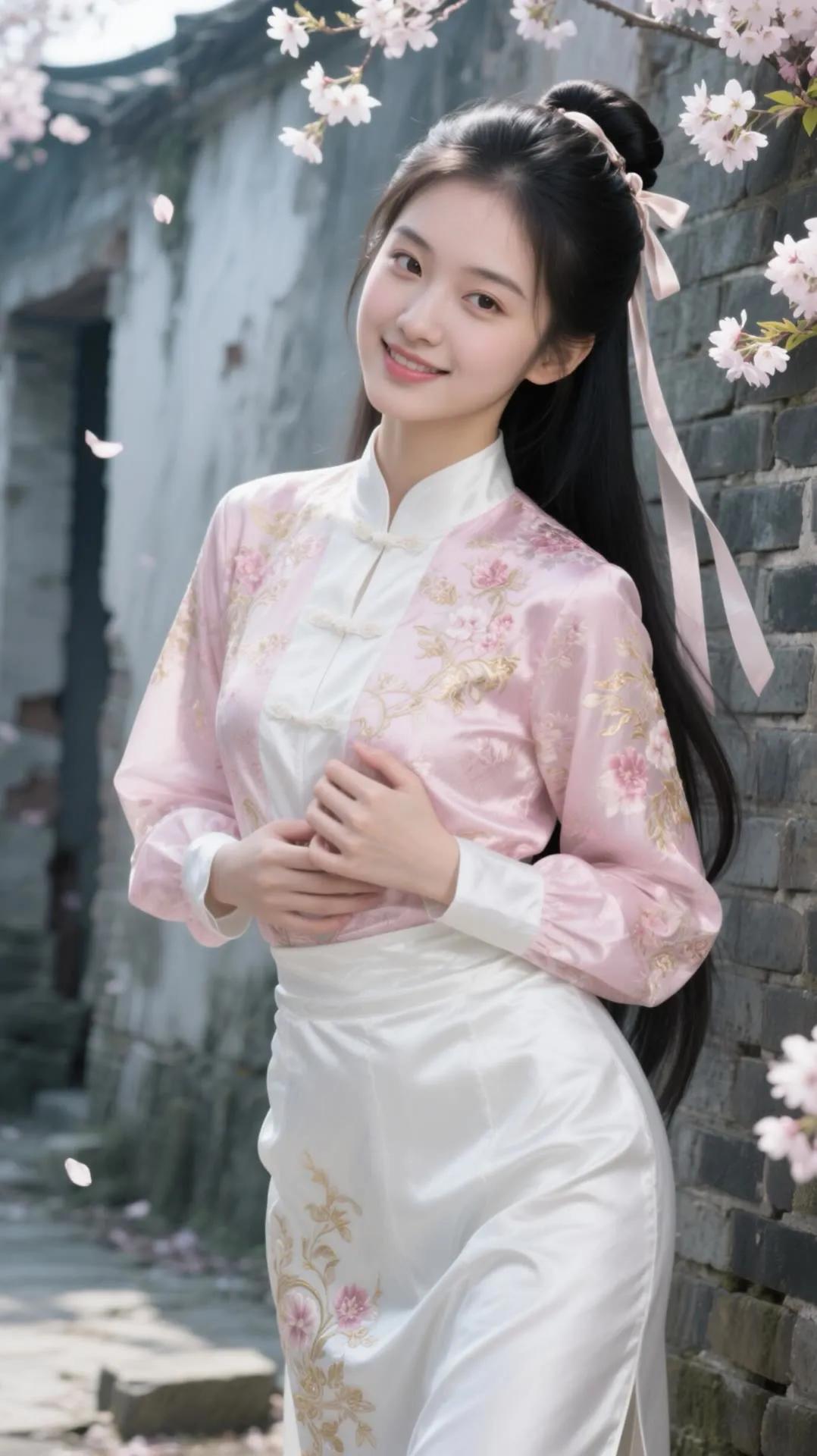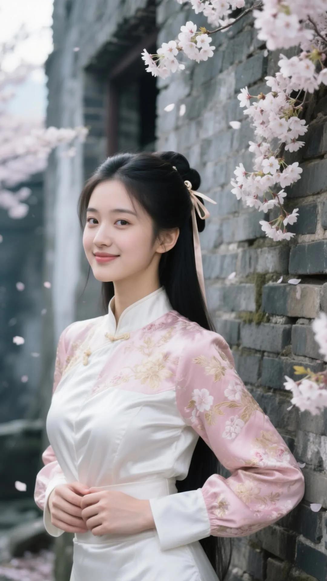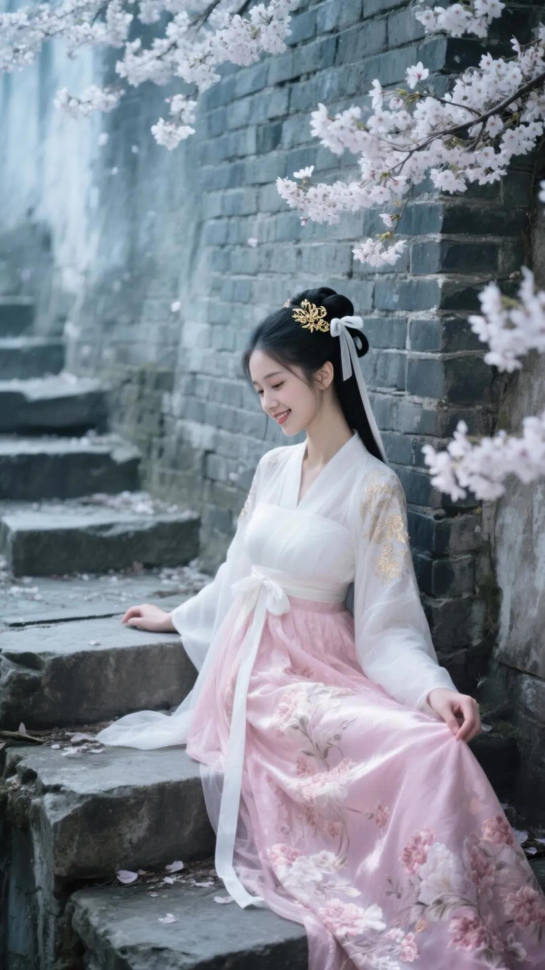 樱花树下,少女浅笑,古风韵味,美不胜收。