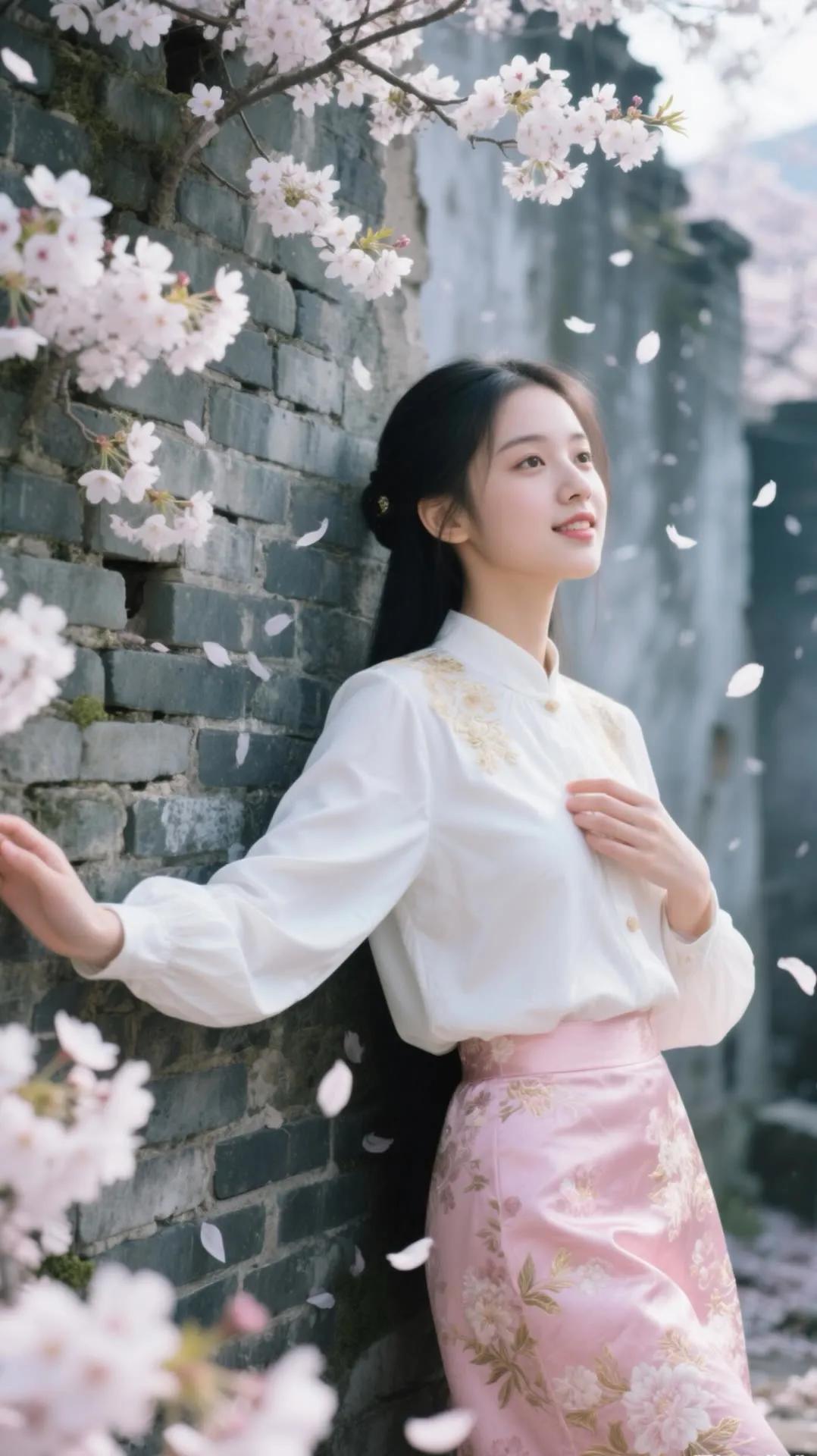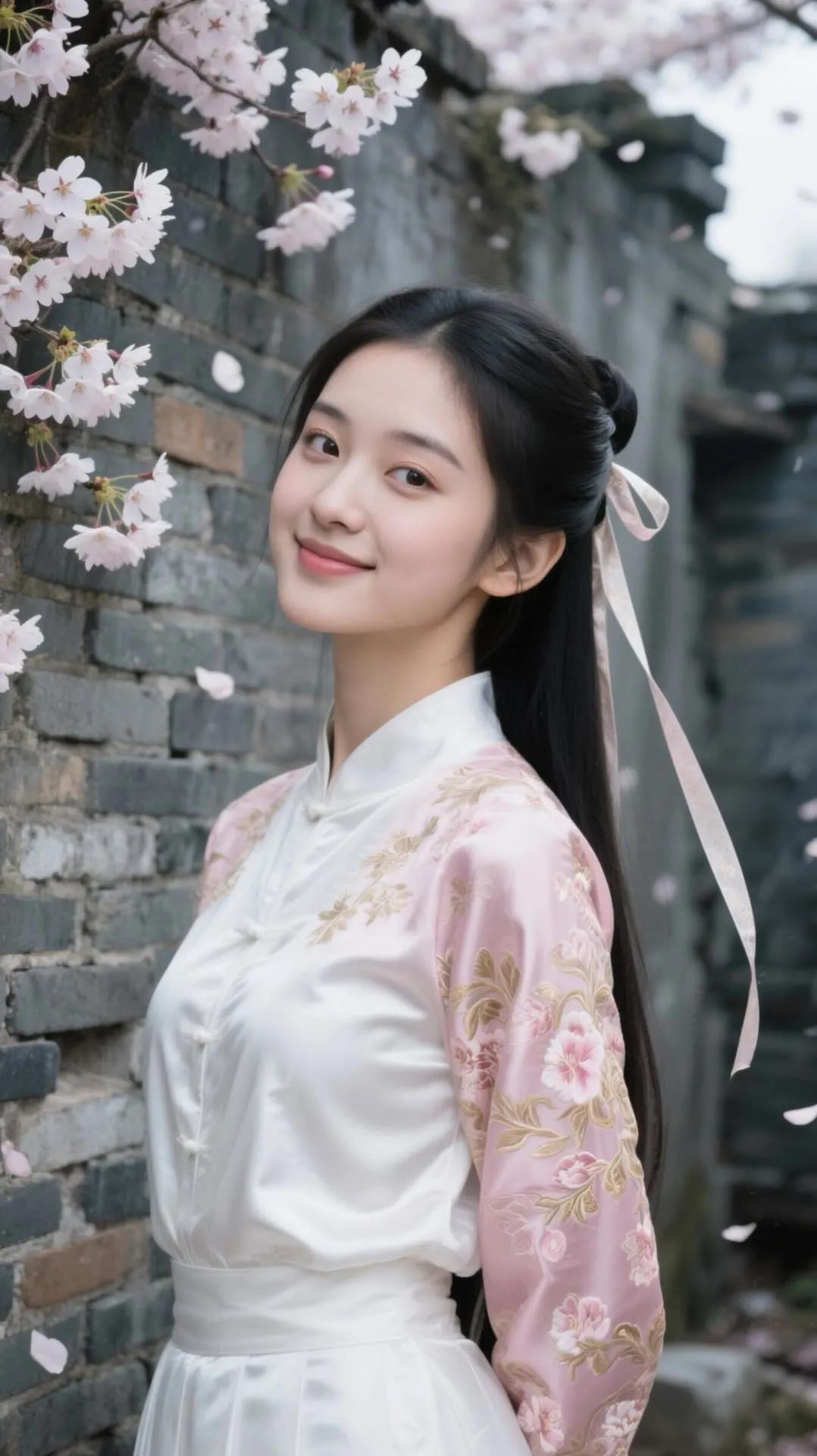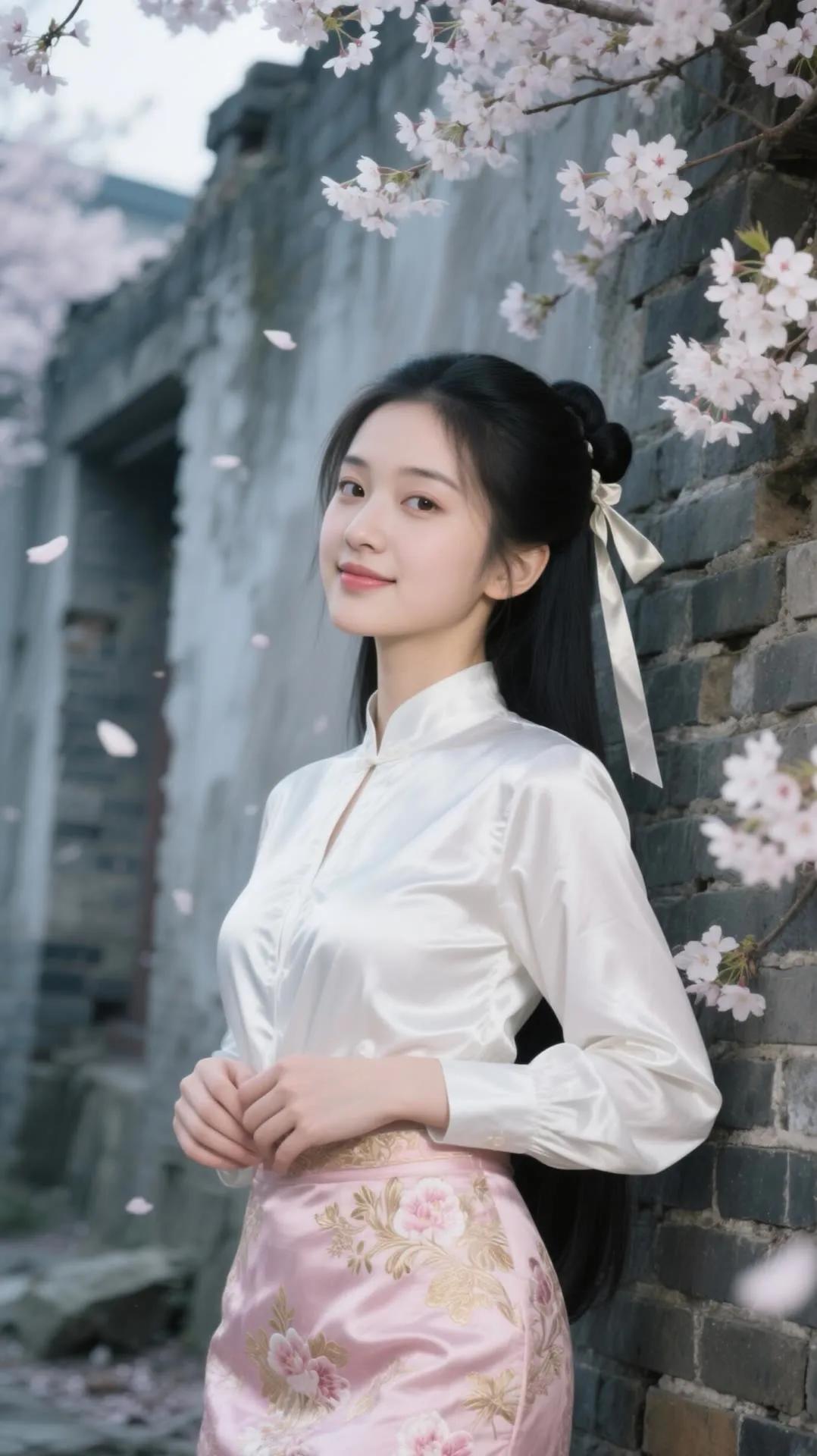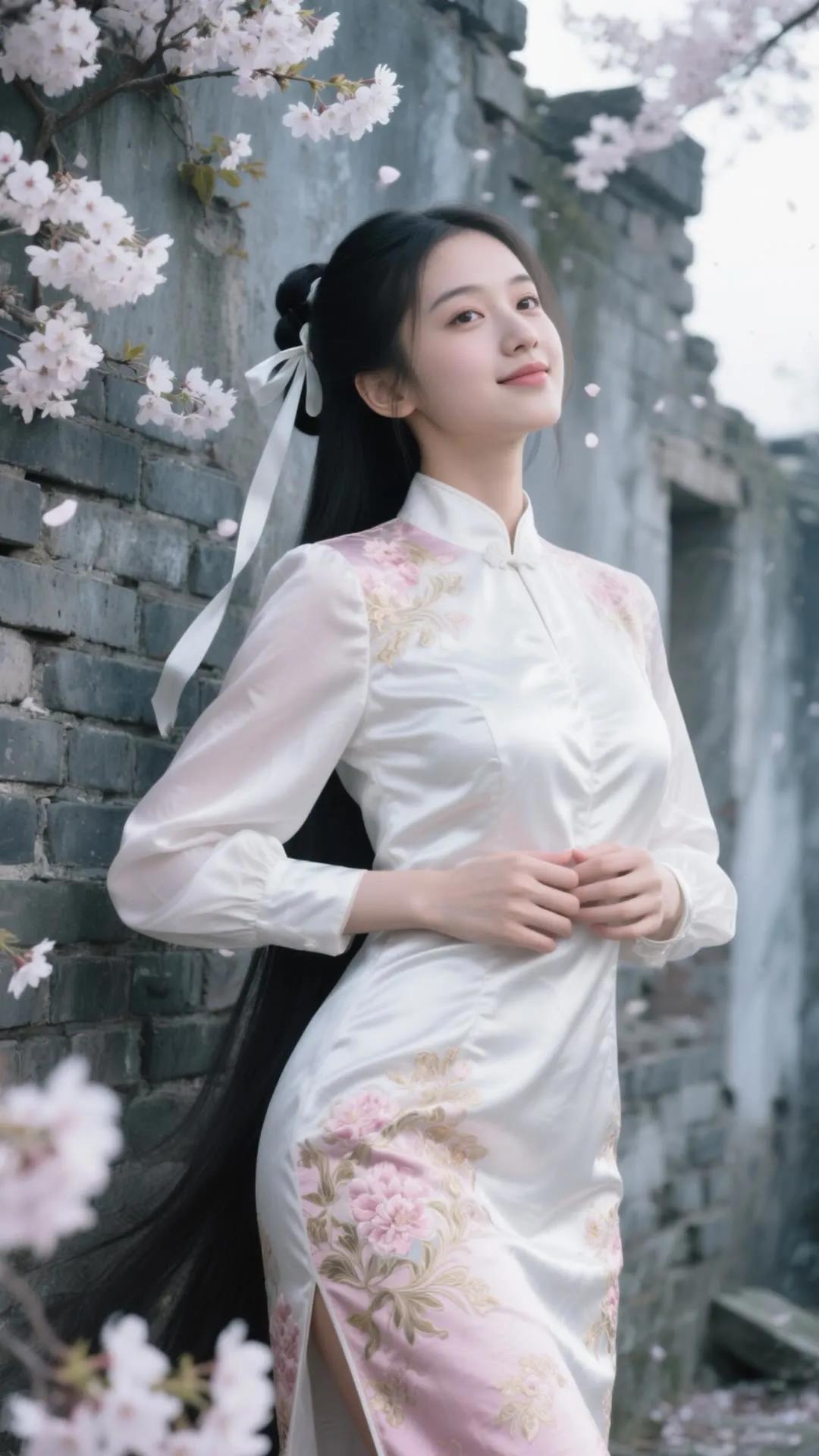 樱花树下,少女浅笑,古风韵味,美不胜收。