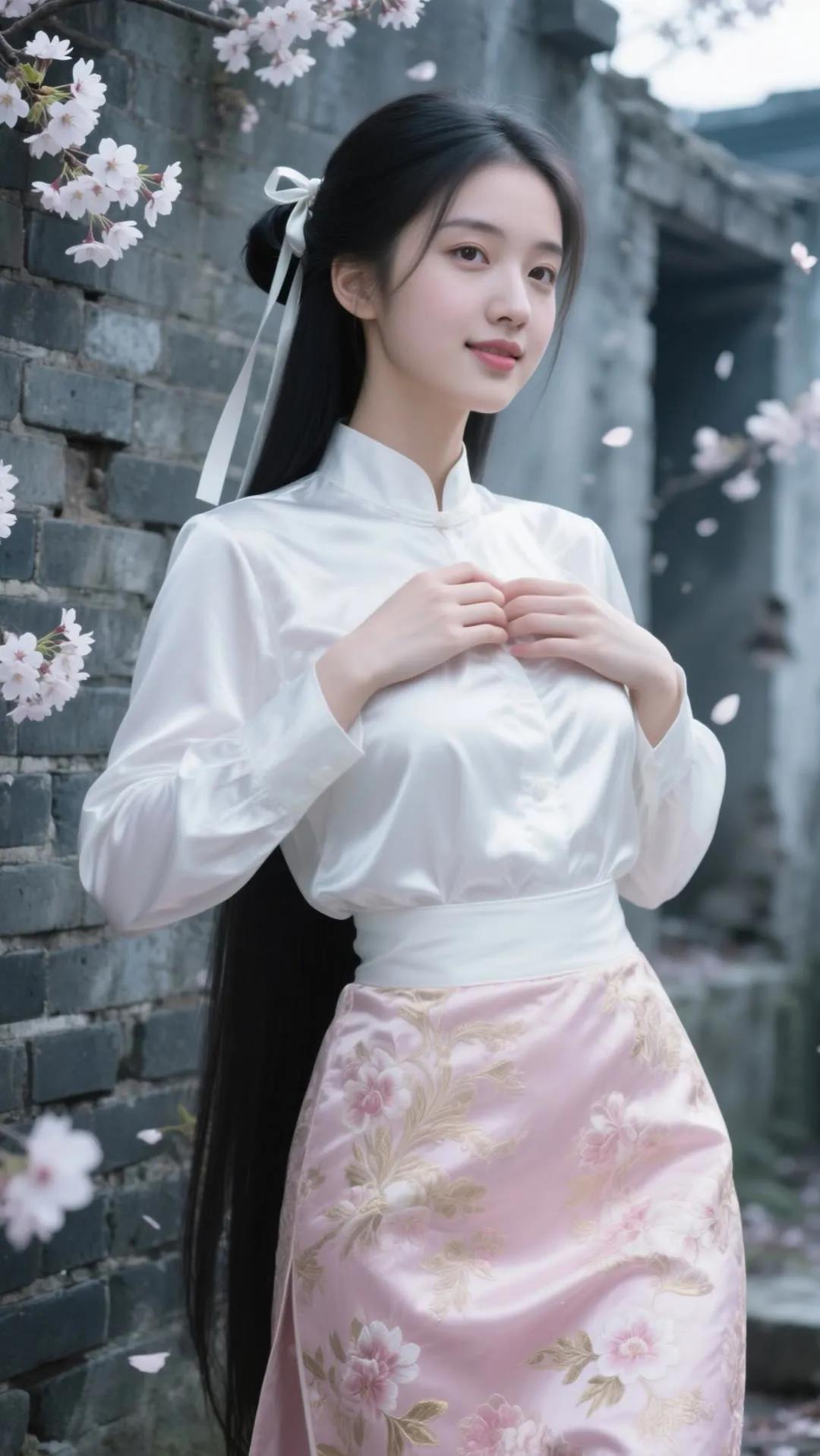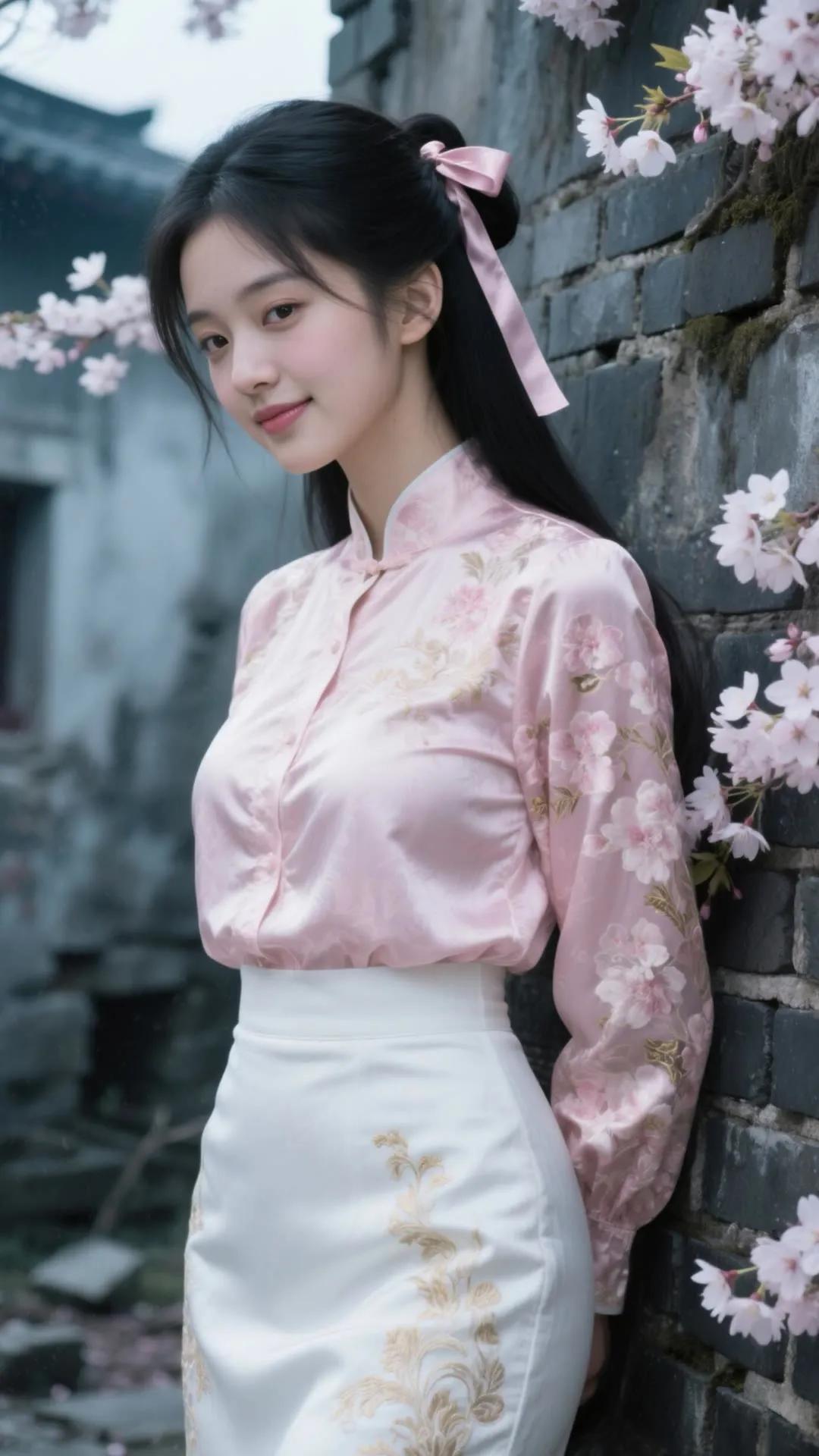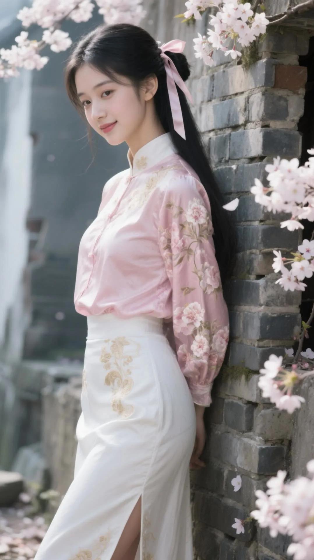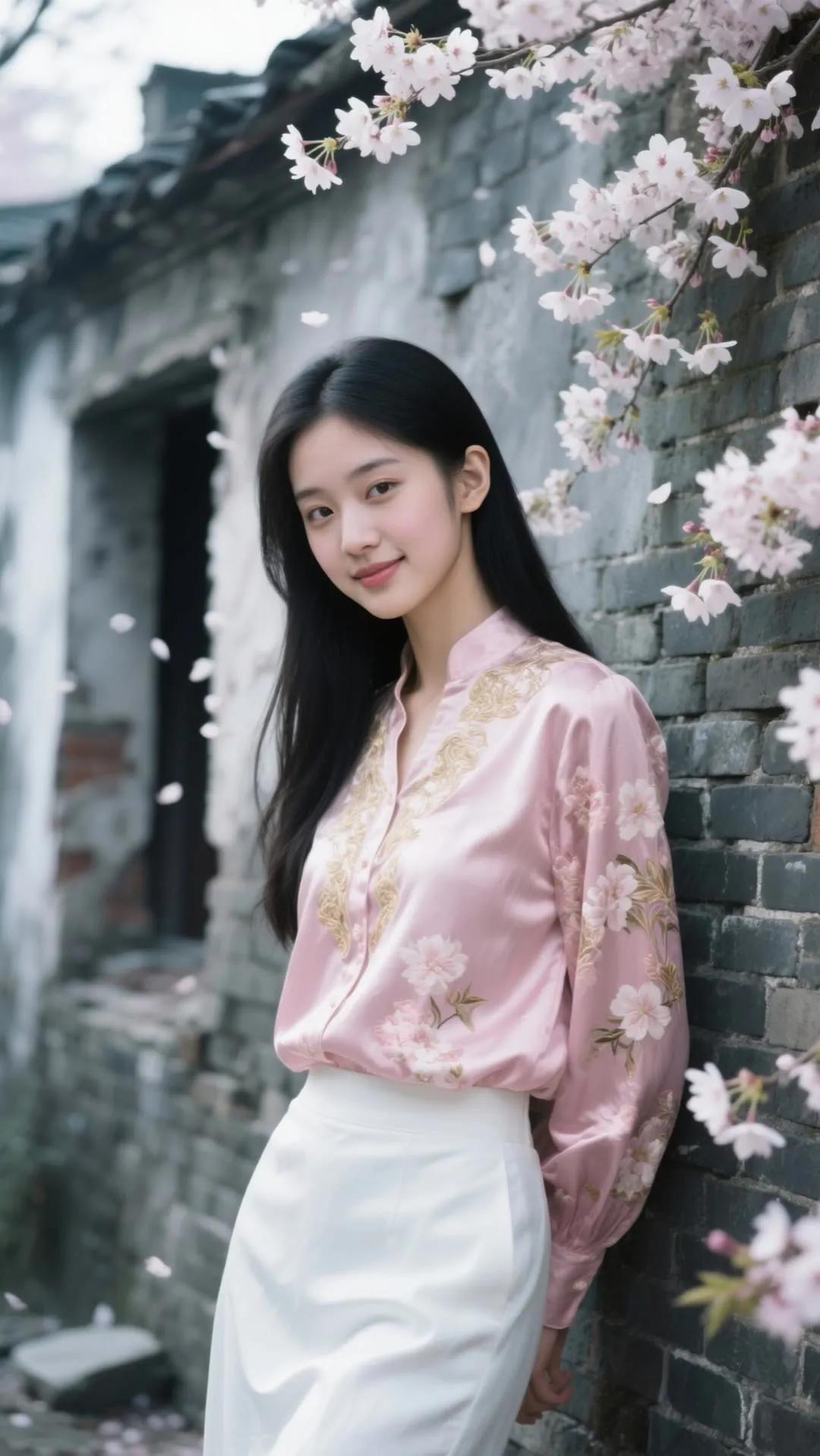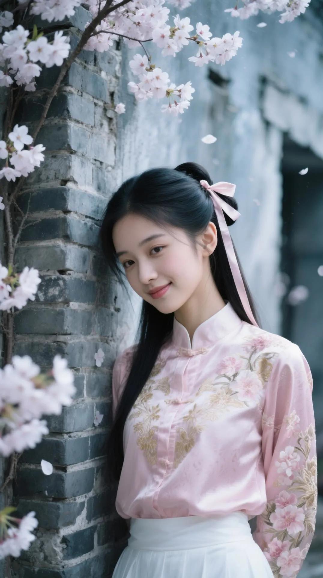 樱花树下,少女浅笑,古风韵味,美不胜收。
