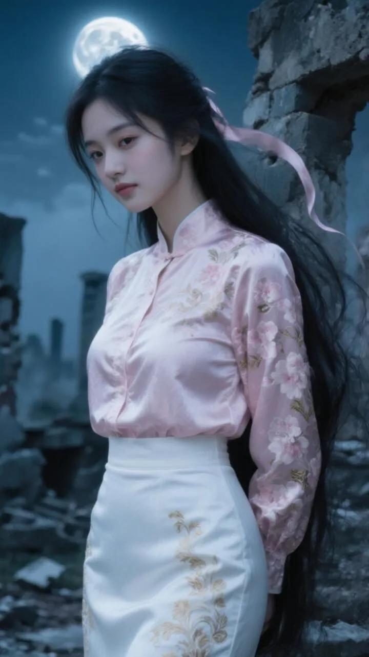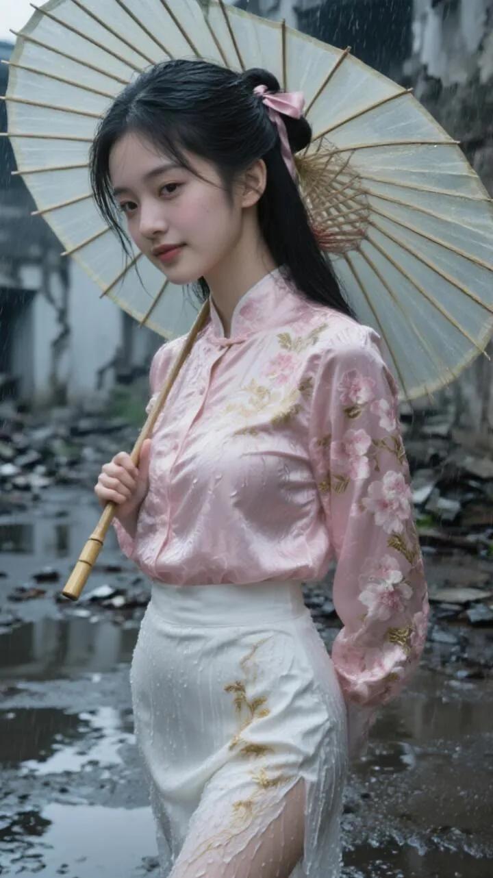 旗袍诗韵:一寸月白,半阕春词青花黛色,未干墨迹裹住细腰,步子轻踩踩碎晨