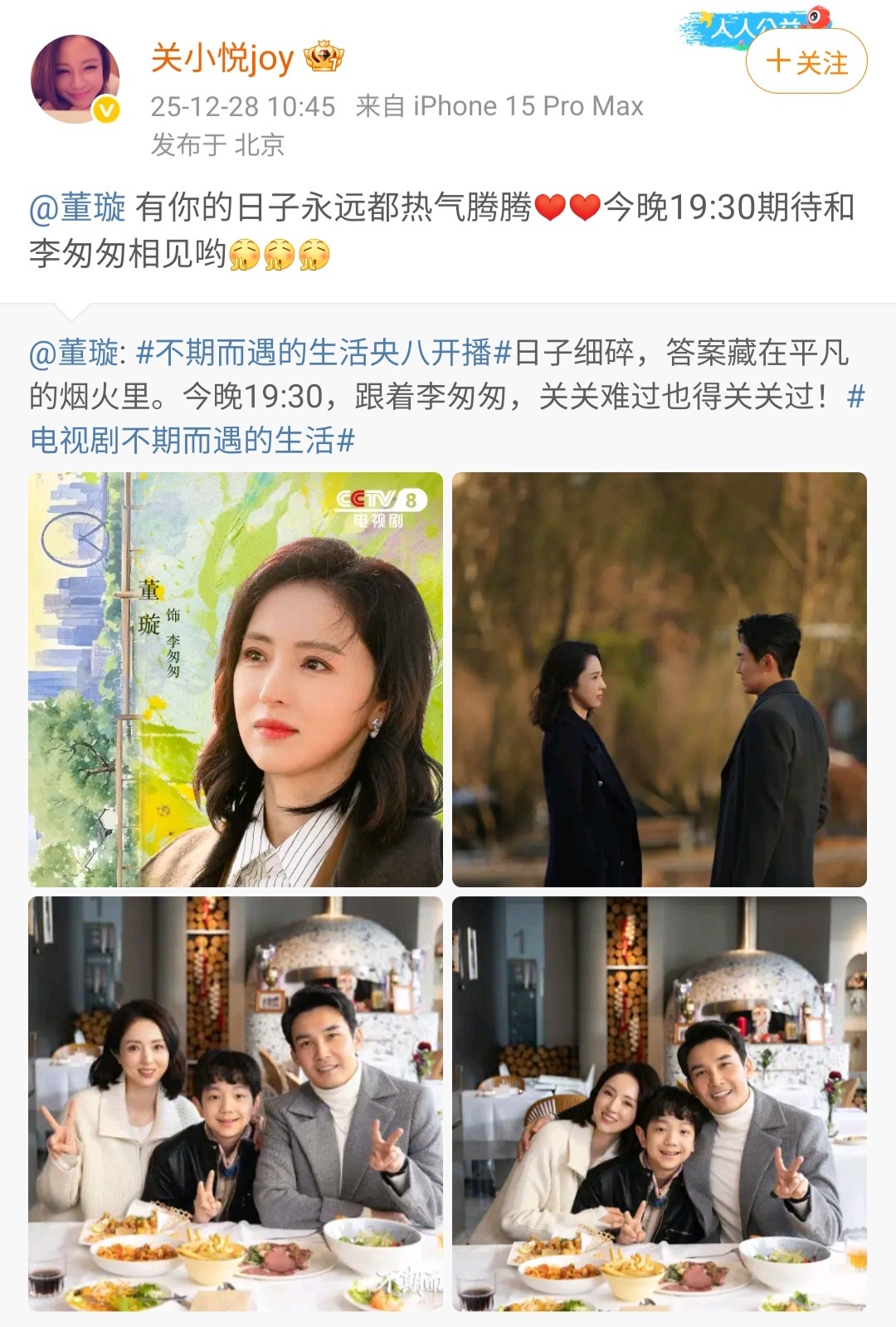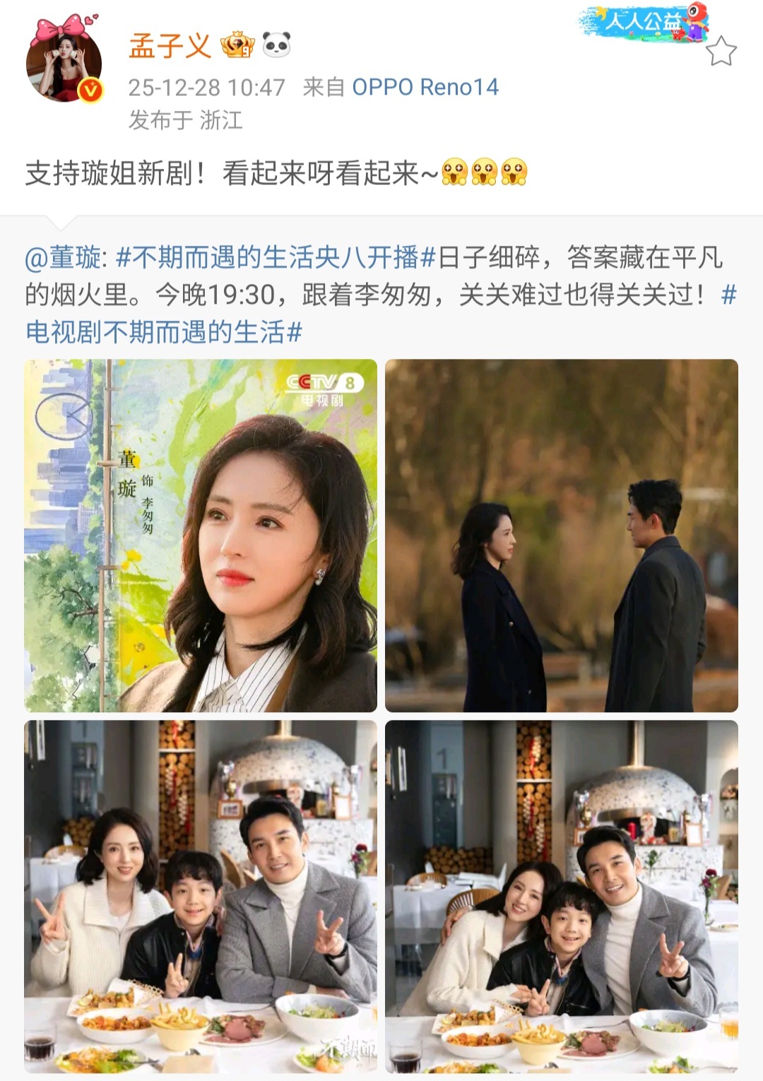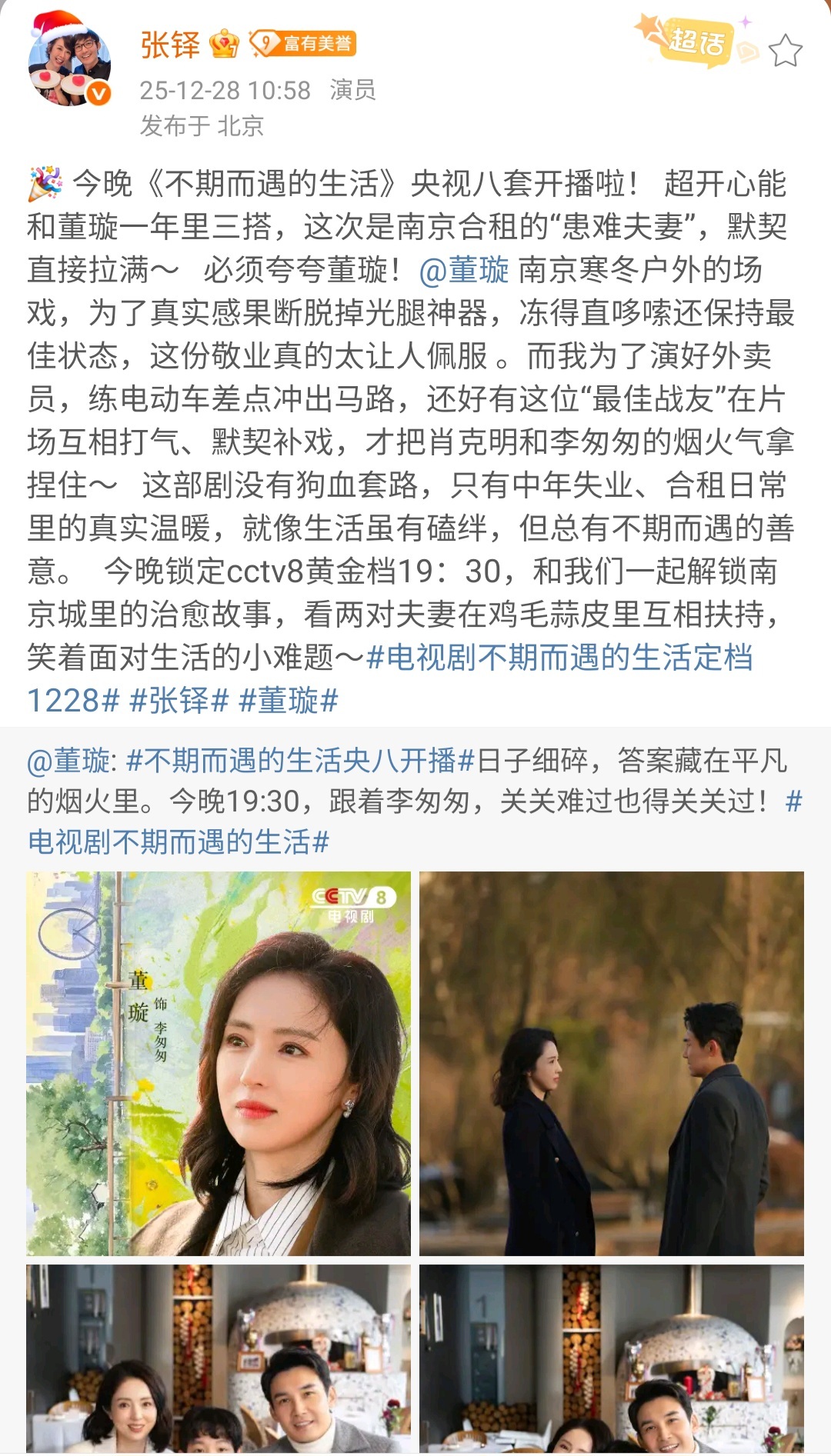 董璇的好人缘藏不住了董璇新剧开播,直接变成娱乐圈团建现场!孟子义、周也、沈月、陈妍希、佟大为关悦夫妇、还有我们喜人全来打卡打call,隔着屏幕都能感受到这波神仙友谊!果然真诚的人走到哪儿都有好人缘,璇姐这人脉和口碑,真的狠狠慕了!今晚《不期而遇的生活》锁死,必须蹲守!