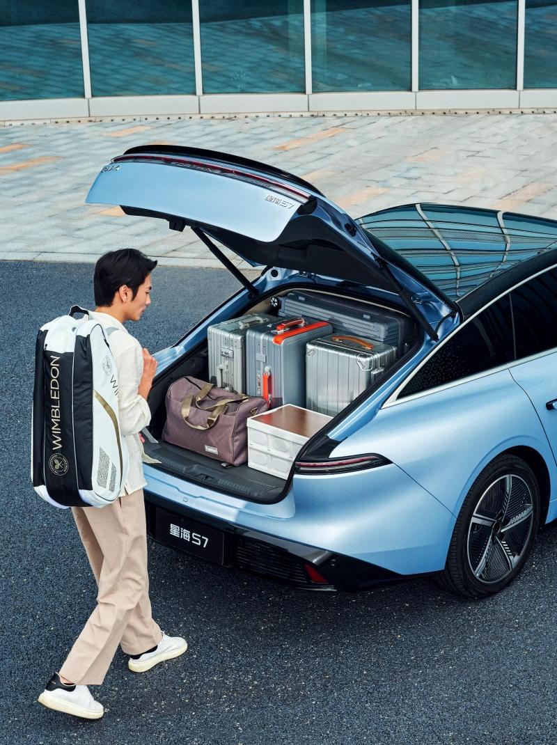 谁说电车不敢闯沙漠?星海S7给你这份勇气! 冲上沙丘的瞬间,电机声就是最燃的BGM!底盘超稳,冲坡稳如陆地飞船! 星海S7还是出片神器,流线车身在金色沙丘前极具未来感,建议把车停在沙脊上,用广角低机位拍摄,分分钟出杂志封面!