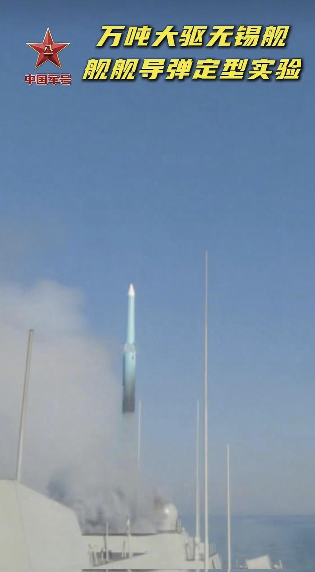 055万吨大驱无锡舰发射舰舰导弹YJ-20定型实验到画面。