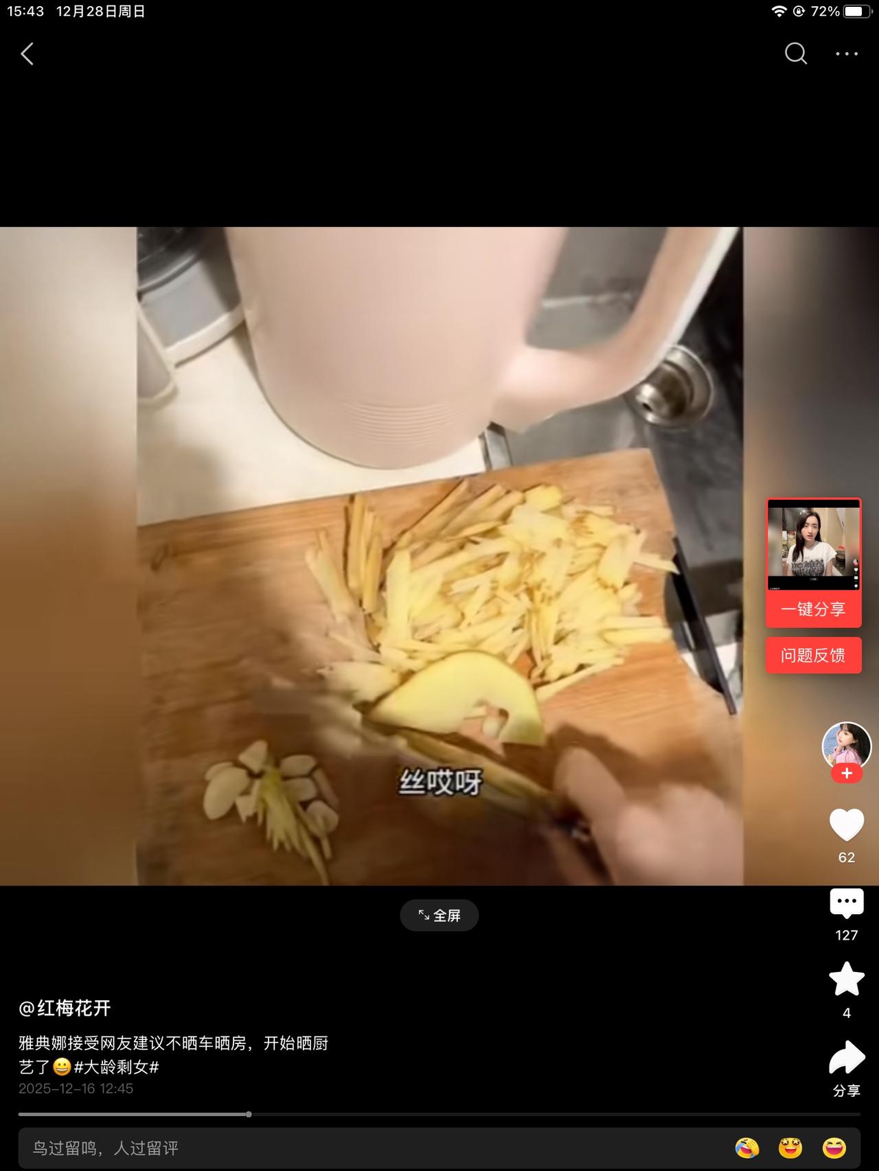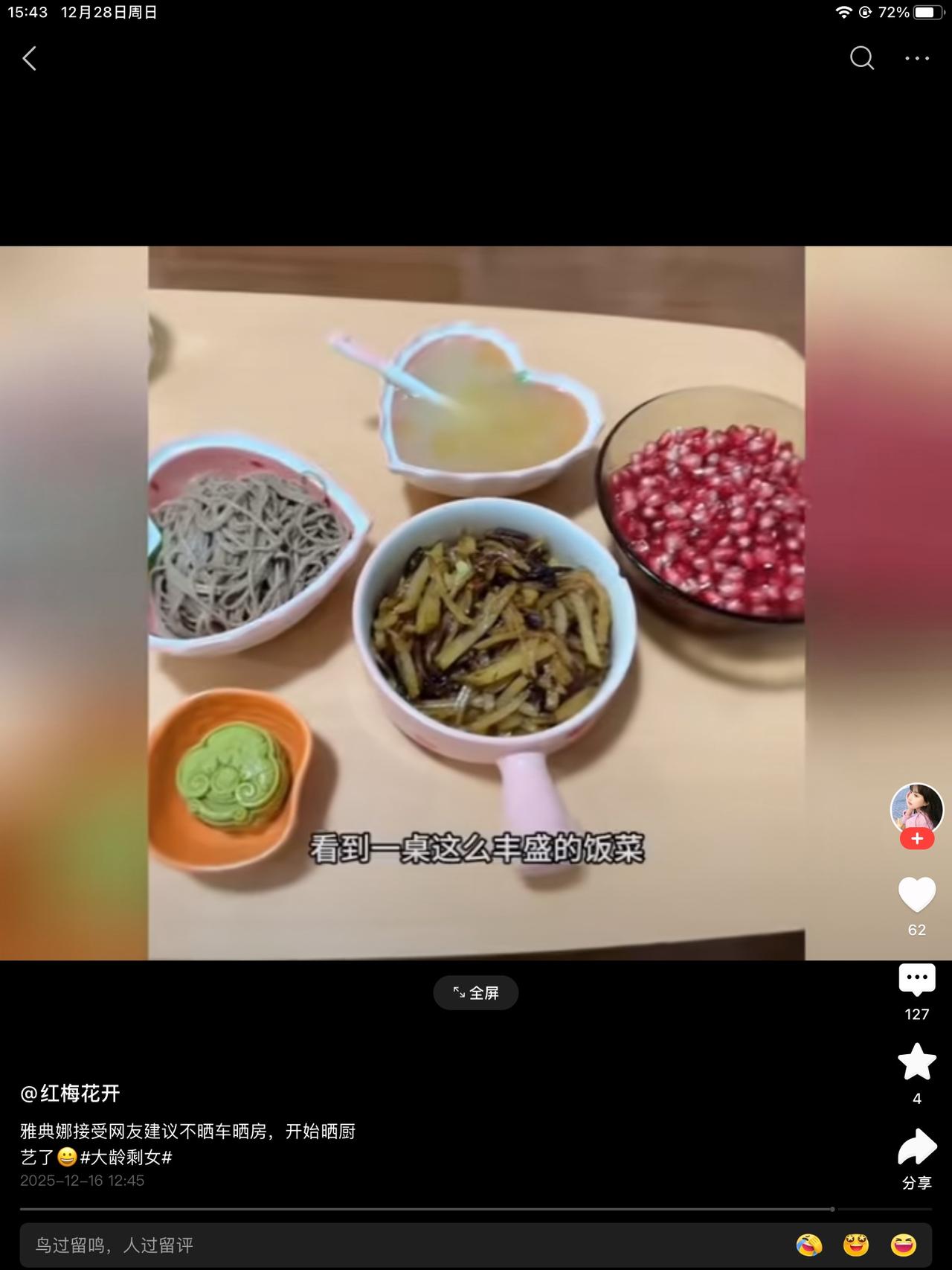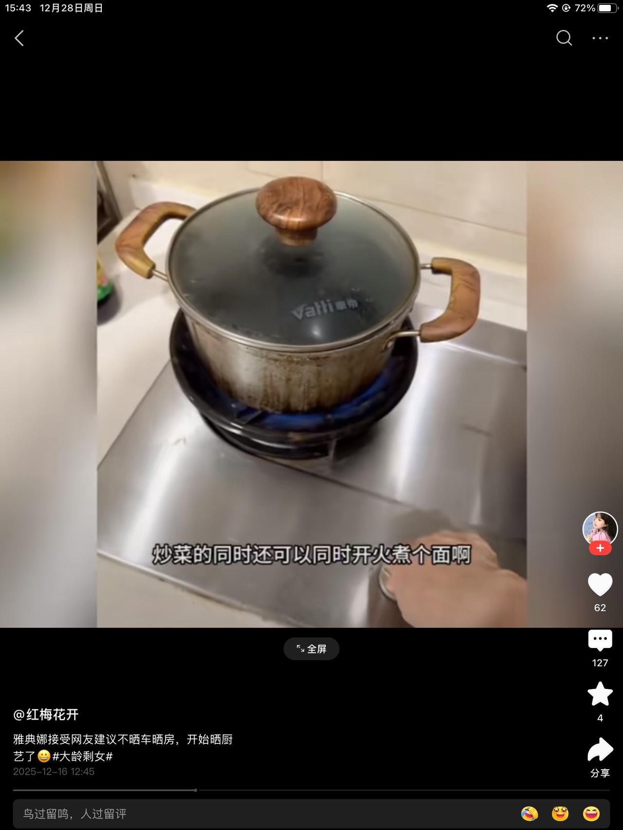 雅典娜听取了网友的建议,不再网上说择偶的标准时,把房子车子学历挂在嘴上,开始展示厨艺~不削皮的土豆,煮面条的锅的外围脏的都不洗以下,餐具倒很花哨,仔细看,土豆丝胡吧烂啃的,面条汤➕个鸡蛋就成了鸡蛋汤。 没有荤腥,只有素的一个土豆。这样的水平农村出身的我也看不下去了。这还得修炼呀!哪能得到小帅哥的青睐呀! 给农村40+的光棍都不一定要。继续做自媒体赚钱吧!这是自媒体圣体,槽点太多了,太能红了。