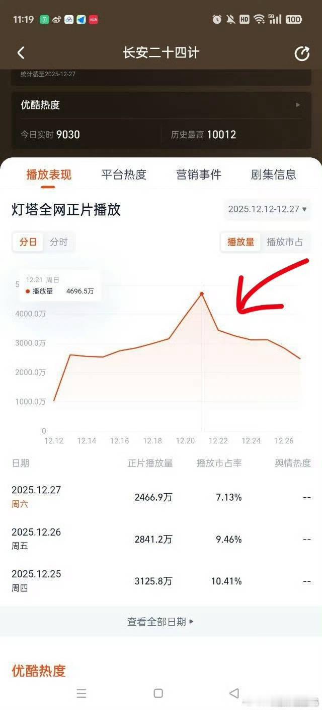 每天发这种虚假吹比不觉得丢人吗,超点完第2天站内热度值就一路下坠到8000档,云合掉到8%,这是根本没有留住任何路人也没有新观众入场的数据,灯塔注水这么多不过1300均集的走势,梦里的全网好评啊