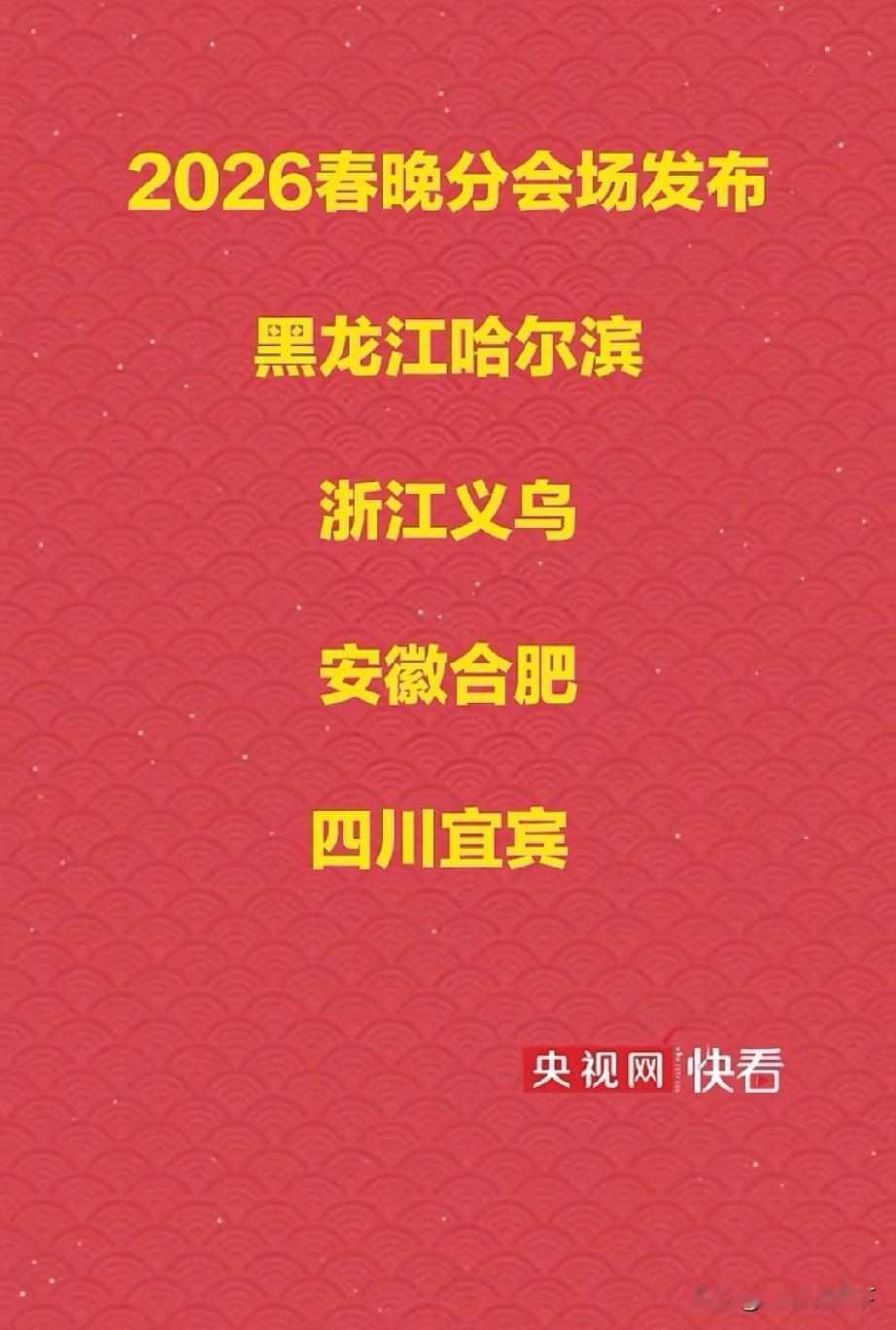 恭喜合肥拿下央视春晚分会场,安徽省城市历史上的第一次 央视官宣春晚分会场,分别是:黑龙江哈尔滨,浙江义乌,安徽合肥,四川宜宾。 这也是安徽省城市第一次成为央视春晚分会场举办地。 合肥近年来发展快速,成为继深圳之后,中国20年来发展最快的城市之一,gdp突破万亿,常住人口突破千万,也是国内为数不多的“双万”城市。 央视春晚将合肥确定为分会场之一,可以极大的提升合肥的城市知名度,毕竟亿万国人,在除夕之夜能够看到来自于合肥分会场的精彩表演。 这也是安徽省城市历史上的第一次,可喜可贺。合肥春晚 春晚四分会场 合肥跨年联欢 春晚主会场
