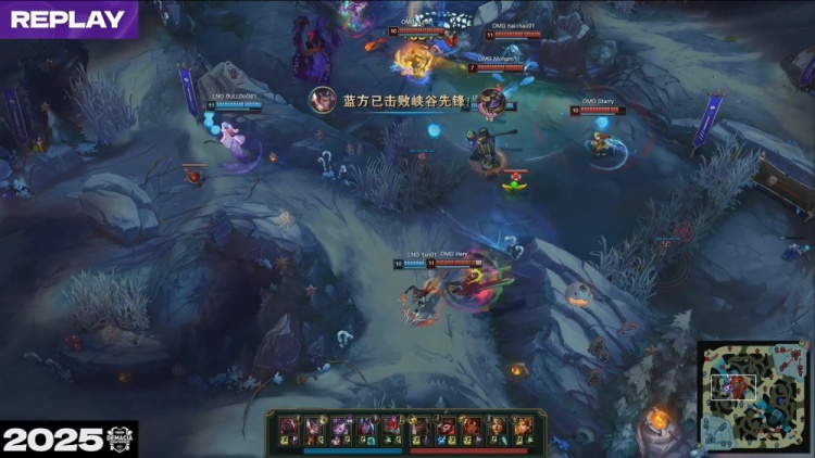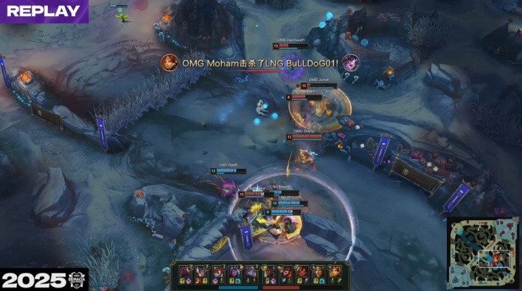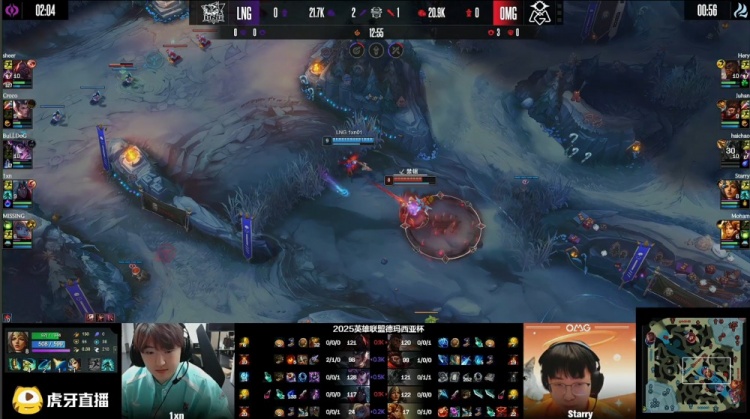[21:56]haichoa岩雀抬飞BuLLDog辛德拉将其击杀,随后Missing难逃一死,OMG打出0换2回头吃掉厄塔汗,经济领先2k。