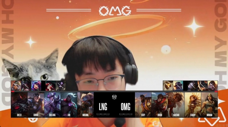 [19:31]LNG中路推进拔掉OMG一塔,双方持续拉扯,小龙团,Missing波比锤假猴,Junhan猴子拿到小龙,正面LNG双C瞬间阵亡,OMG打出1换3,双方经济持平。