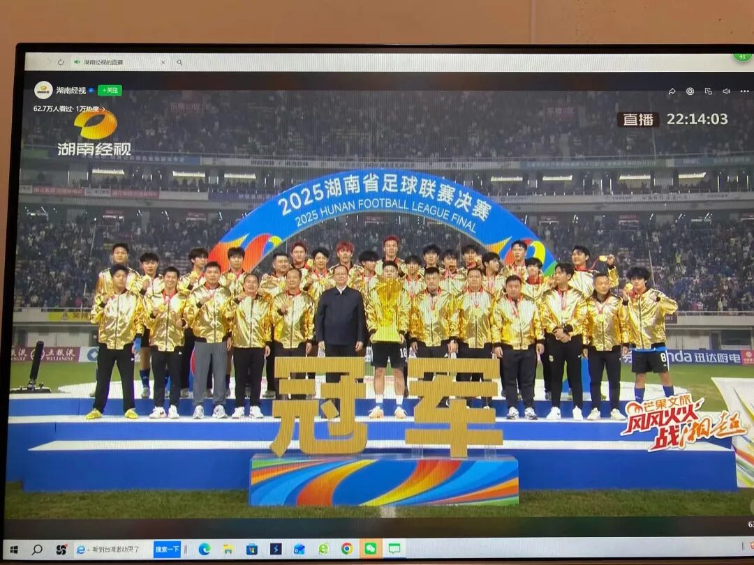 (特约通讯员:肖惠敏)2025年12月27日晚,中国民族卫生协会抗衰老专业委员会受邀观看湘超联赛决赛。永州队在2025年湘超联赛决赛中,凭借队员谷文杰第58分钟的头球破门,以1-0绝杀常德队,队史首次夺冠。本次比赛现场吸引43695名观众。永州队平均年龄19.8岁,主教练黄楚儒(32岁)与队长张华越(28岁)带领以学生为主的团队,赛前训练条件艰苦,通过踢快乐足球一举夺冠。据悉,永州队将代表湖南省足球队参加2026年的中冠联赛。中国民族卫生协会抗衰老专业委员会秘书长唐春桥表示,快乐足球作为一种注重参与和乐趣的足球运动方式,对抗衰老过程具有多方面的积极影响,它通过结合身体活动、社交互动和心理愉悦,促进整体健康,抗衰老专委会对永州队夺冠表示最热烈的祝贺。