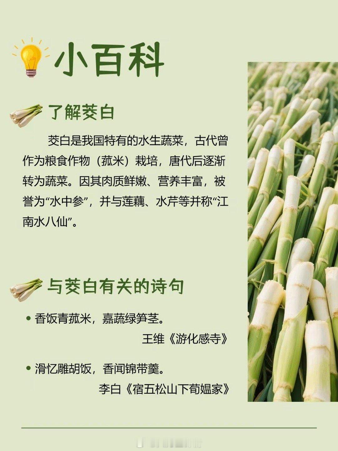 茭白居然和大米是亲戚茭白原本是古人吃的粮食 吃德清茭白的时候,谁能想到它曾是古人的主食?从产菰米的六谷之菰,到脆甜的水八仙蔬菜,这波变身太惊喜。