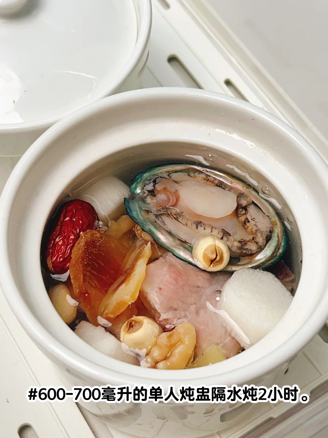 ▪️沙参10g▪️百合5g▪️无花果5粒▪️莲子15g▪️小鲜鲍▪️枸杞▪️猪展(腱子肉)300g▪️姜片