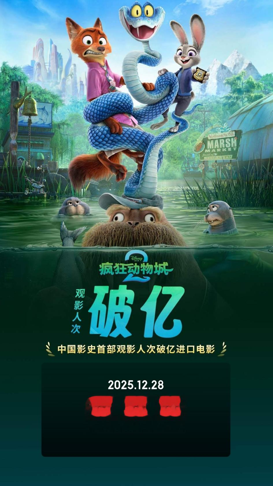 《疯狂动物城2》成中国影史首部观影人次破亿进口电影