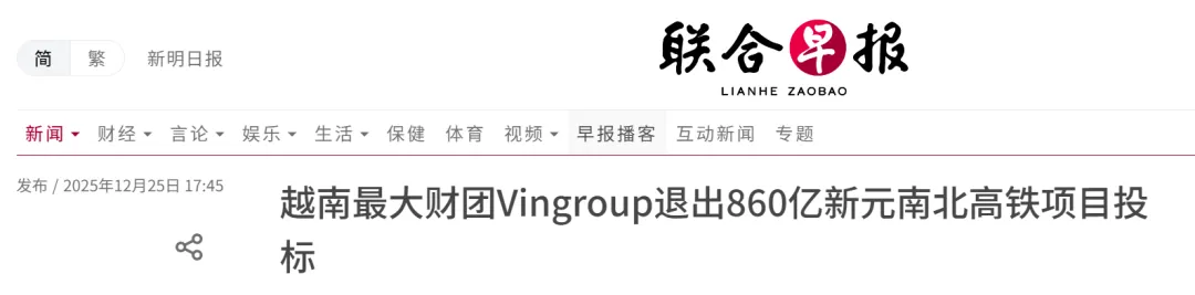 12月25日,越南最大的民营财团Vingroup温纳集团突然宣布“不玩了”,撤回南北高铁项目的投资申请。要知道,就在一周前,他们才刚刚高调宣布和德国西门子签署协议,准备引进德国技术。