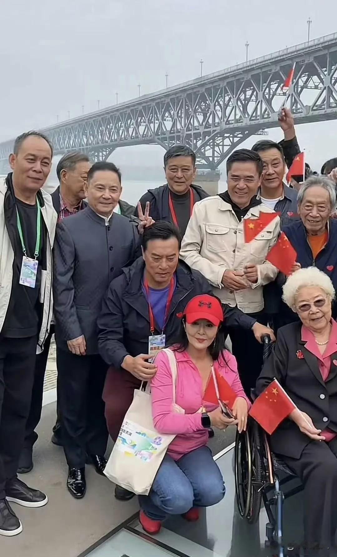 乍一看,以为是一个普通的老年旅游团!再仔细看,发现没一个是普通人! 轮椅上坐着的好像是著名表演艺术家田华老师,拉着手的是李雪健,后面是王荣奎、陈宝国、吴刚。左侧穿深色外套的应该是张山,在《三国演义》中饰演赵云。