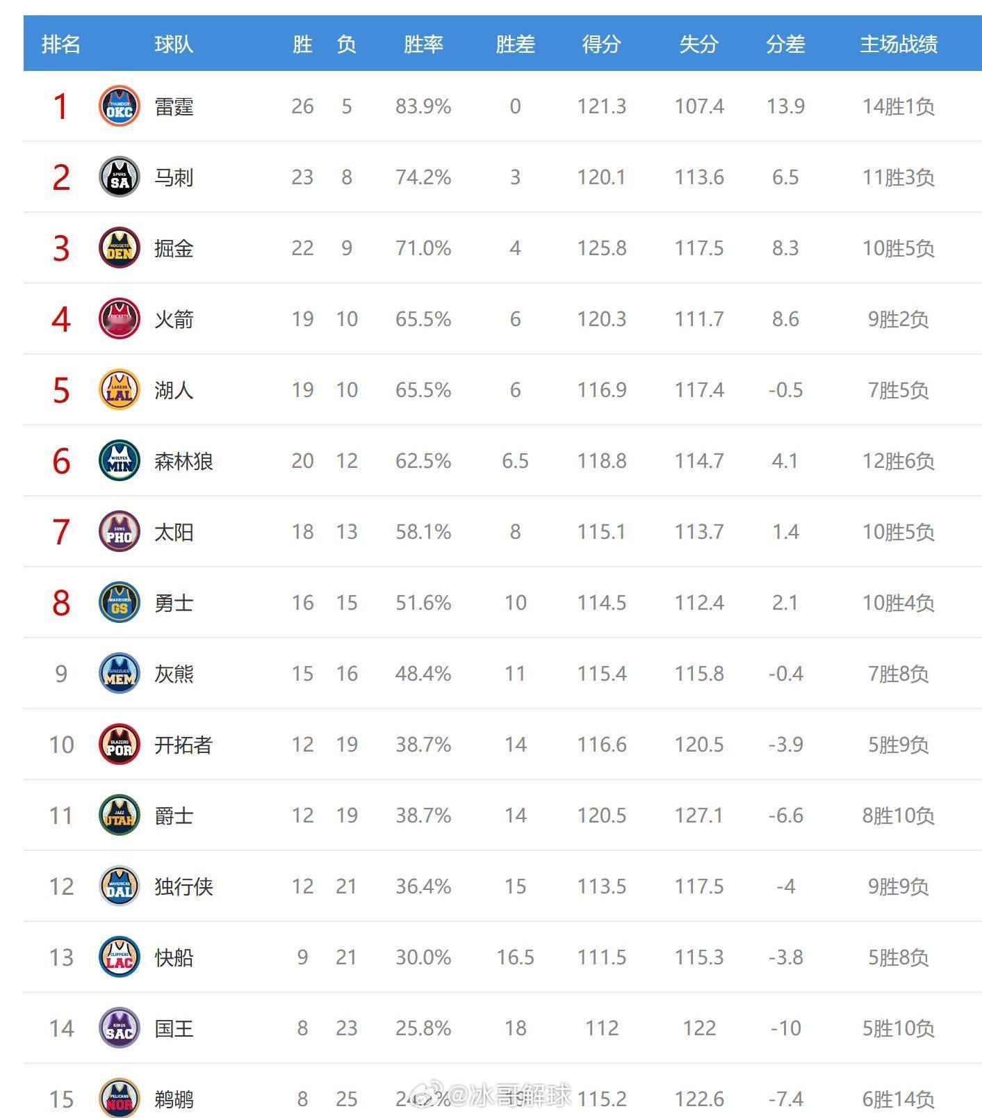 NBA西部排名迎来大洗牌,9场赛后7队互换位次。掘金爆冷1分惜败魔术,爵士背靠背
