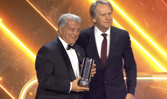 拉菲尼亚并没有出席今天的颁奖典礼,由拉波尔塔代为领取。