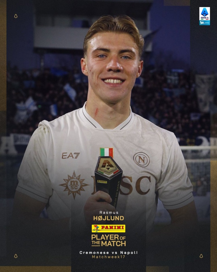 据赛后意甲官方消息,那不勒斯前锋霍伊伦当选此役最佳球员。