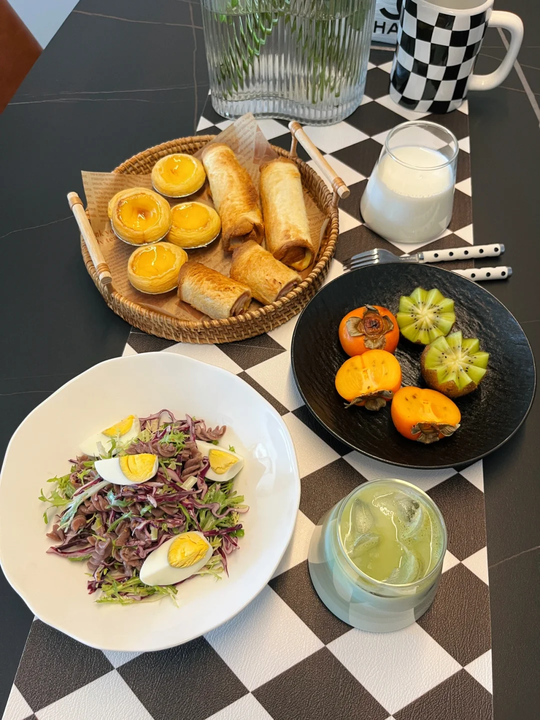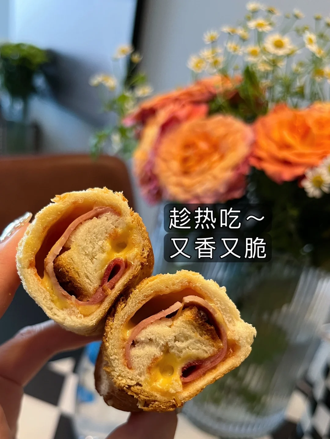 今天早饭芝士吐司卷安排上(4图有教程) 还做了一杯抹茶拿铁,这个绿色真是又好看又好好喝(温水冲一勺抹茶粉备用,杯子里加冰块,加奶到八分满最后倒入抹茶液就ok了,喜欢甜的再加点蜂蜜,抹茶控的宝子们一定要试试~)